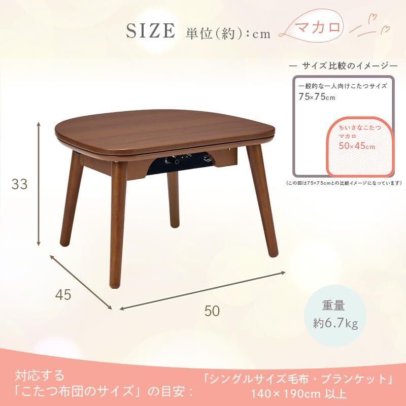 【特価セール】ユアサプライムス公式 こたつテーブル マカロ545F(BR) 50×45cm ブラウン 一人用こたつ 長方形 おしゃれ 小さい (通常)