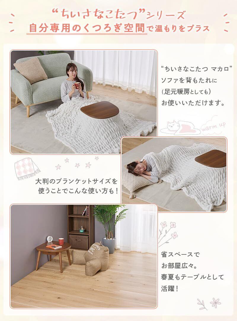 専用のこたつ布団が不要!ブランケットや毛布をかけて手軽に暖をとれる。