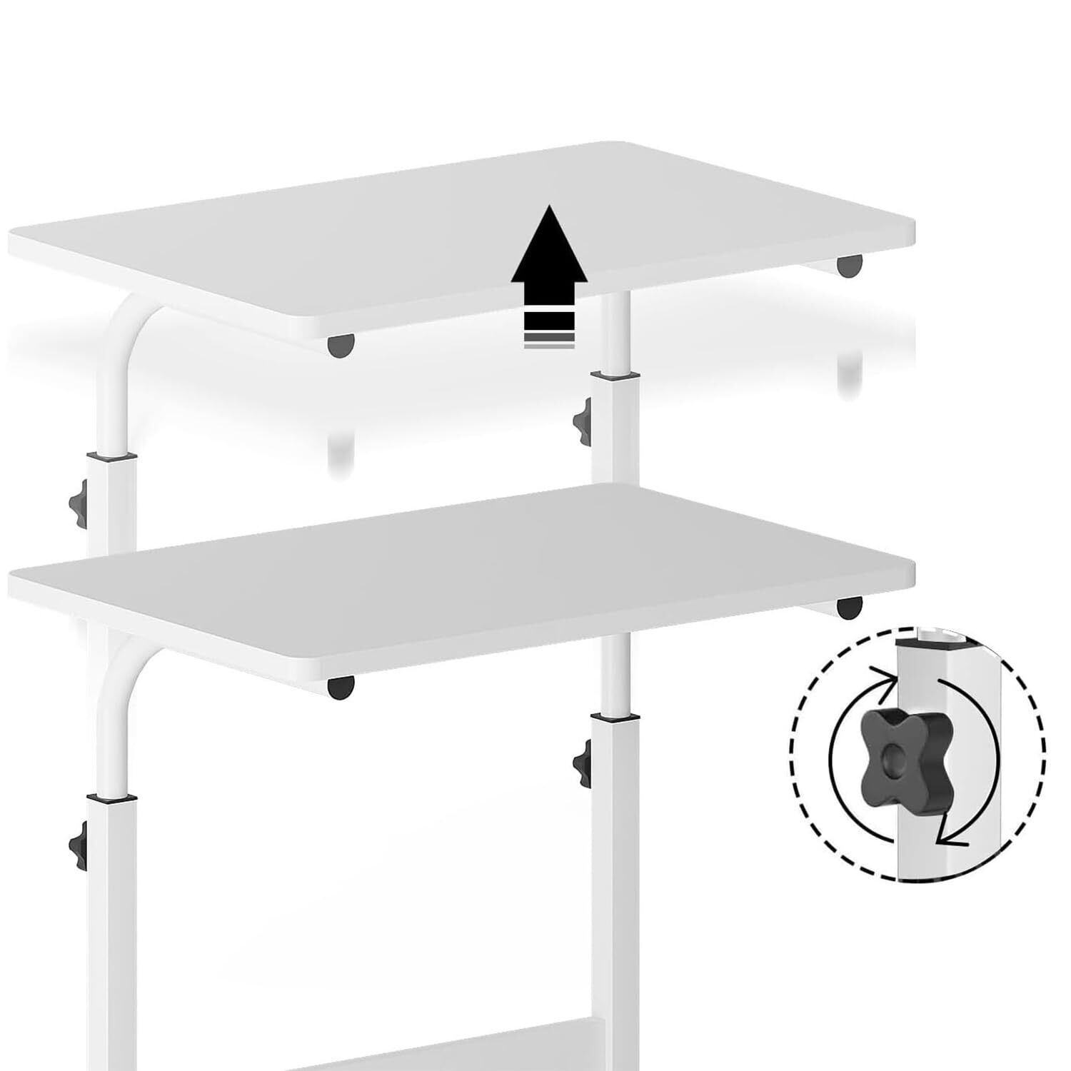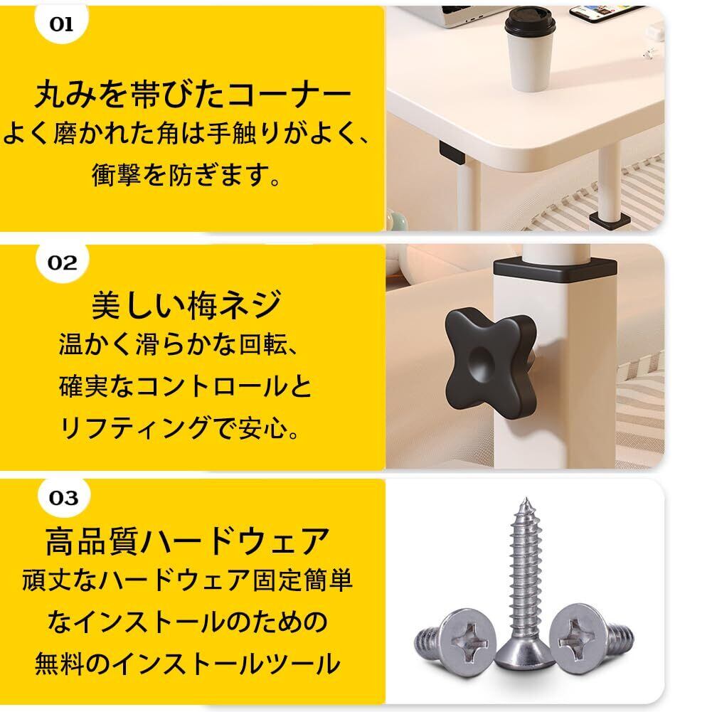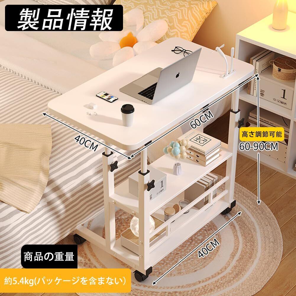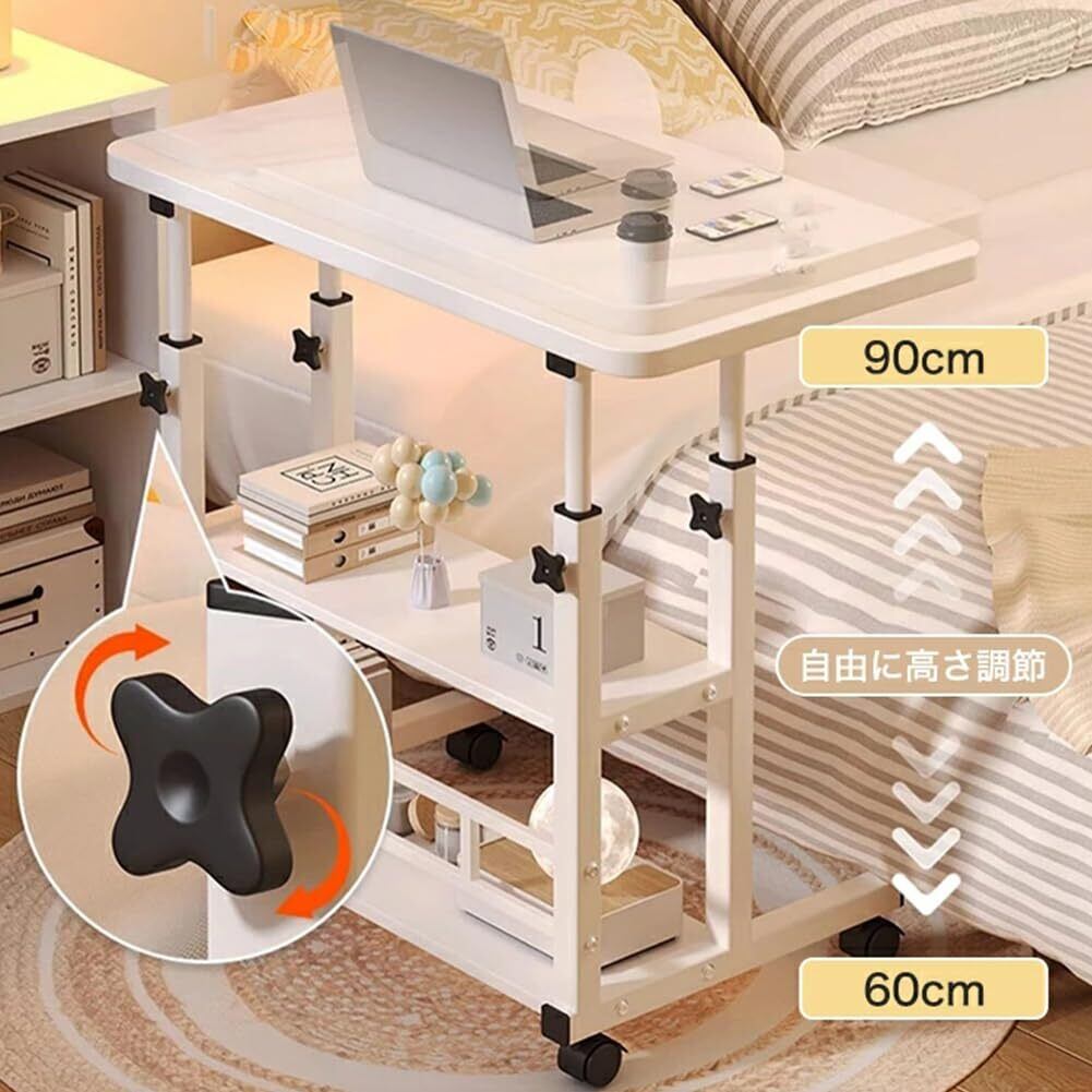【2022最新】ベッドサイドテーブル 昇降式 家用昇降式テーブル サイドテーブル キャスター付き 高さ調節可能 3段(デスクトップサイズ:60x40cm、高さ60cm~90cm) 組み立て簡単 多機能 小型家具 家庭、オフィス、または教室用の小型座位スタンドデスク ホワイト