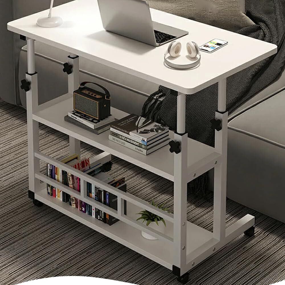 ベッドサイドテーブル 昇降式 家用昇降式テーブル サイドテーブル キャスター付き 高さ調節可能 3段(デスクトップサイズ:60x40cm、高さ60cm~90cm) 組み立て簡単 多機能 小型家具 家庭、オフィス、または教室用の小型座位スタンドデスク ホワイト