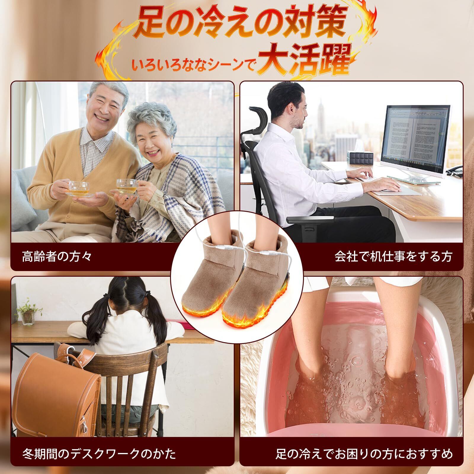 【ポカポカフットウォーマー】足だけを重点的に温めることができる「USB フットウォーマー」が登場!このフットウォーマーは、足温めるグッズとして、新型カーボン繊維を採用。安全を確保しながら、急速に加熱することが可能です。アンクルブーツのような形で、足を入れるだけで床からの寒さを遮断し、足元全体を囲んで効果的に温めます。特に足が冷えやすい女性やお年寄りに適しており、クリスマス、元日、初詣、新年会など冬の寒い日の贈り物としてもおすすめです。