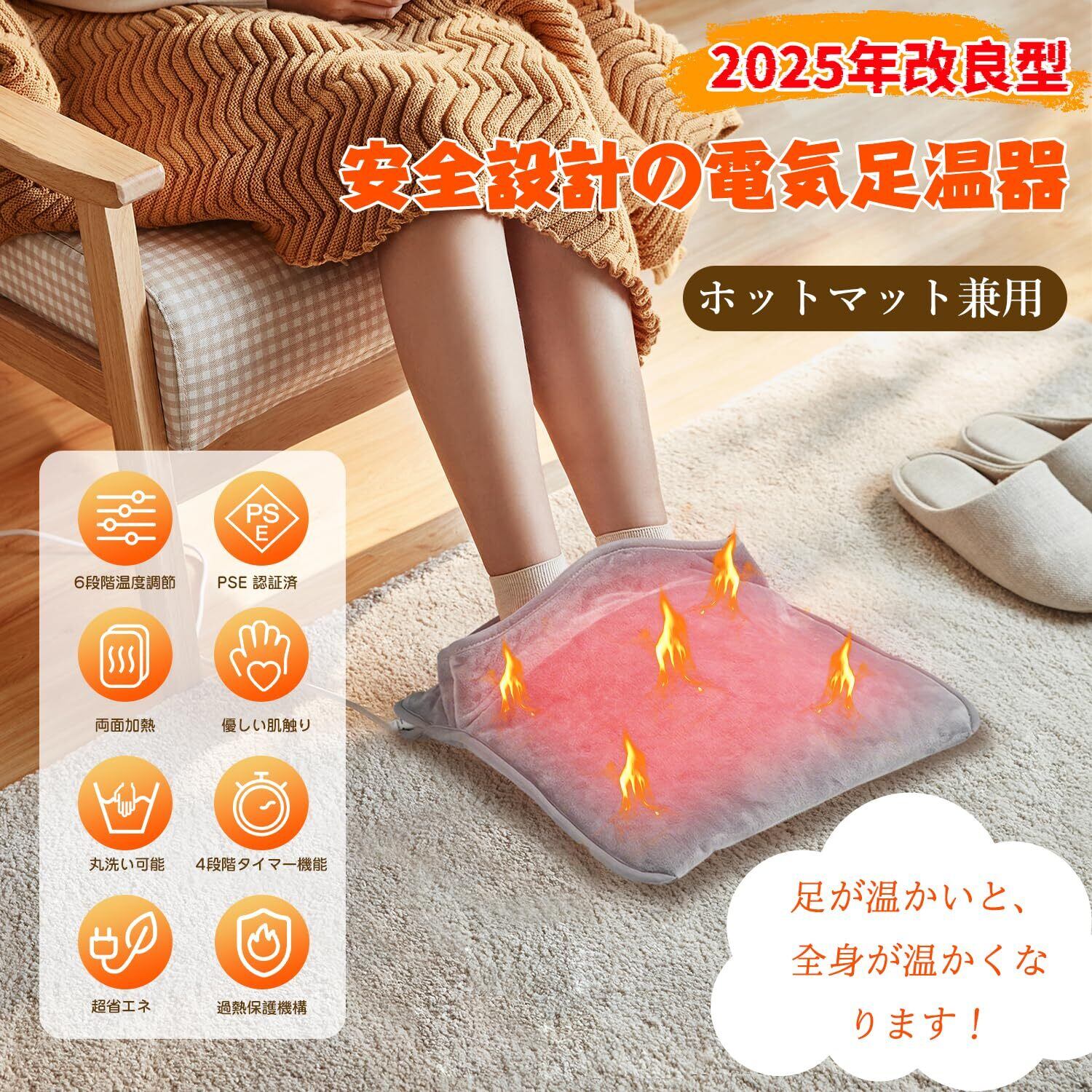 電気足温器【2025年冬新モデル・足温器】フットウォーマー 両面発熱 電気座布団 速暖 足元ヒーター 6段階温度調節 4段階タイマー 過熱保護 丸洗い可 極め肌ざわり素材 抗菌 防臭 収納簡単 省エネ 足元 暖房 暖房器具 冷え症対策 防寒対策 冬の贈り物(グレー)