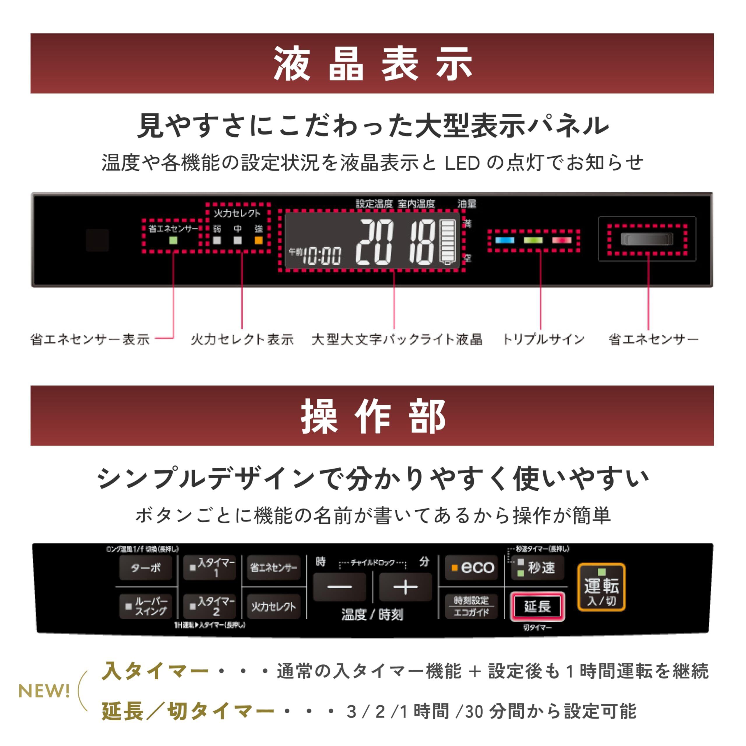 【新ecoモード】ワンタッチで設定温度を20℃に自動切り換えてくれる新ecoモード搭載。無駄なあたためすぎを防ぎ、かしこく節約できます。※1すでに設定温度が20℃以下の場合は、そのままの設定温度で運転します。また、温度を下げることで削減される灯油の消費量は外気温・室温等により変動します。