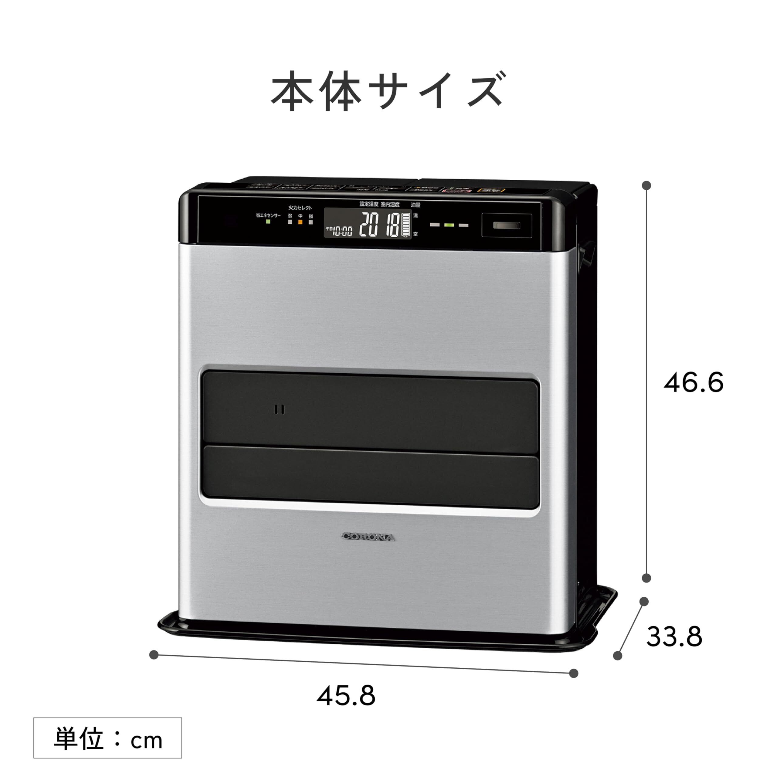 【商品仕様】◇本体サイズ:幅45.8×奥行33.8×高さ46.6cm ◇本体重量:11.8kg ◇暖房の目安:木造10畳まで コンクリート13畳まで ◇暖房出力:3.60~0.59kW ◇タンク容量:7.2L ◇低消費電力:弱燃焼時4W(強燃焼時9.5W)※秒速点火ONの状態では、平均約80Wの電力を消費します。 ◇待機時消費電力:0.8W ◇期間:お買い上げ日より3年間※規定については取扱説明書および書をご確認ください。