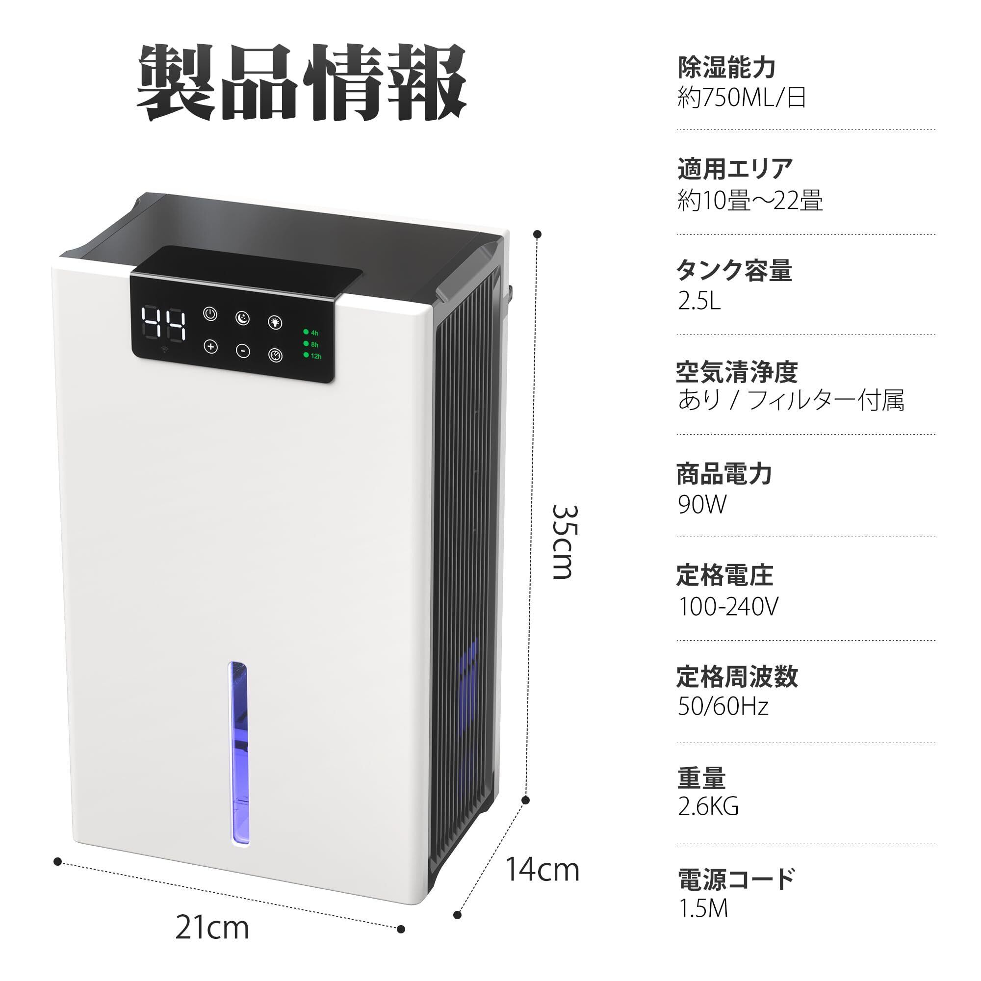 除湿機 小型 ホワイト 衣類乾燥機 除湿器 軽量 部屋干し 湿気取り 最大除湿量750ML/日 大容量2500ML 10-22畳対応 切りタイマー付き 除湿機 静音 エアフィルター付き 7色ナイトランプ 満水自動停止 省エネ設計 じょしつき 部屋 衣類乾燥除湿機 寝室 一人暮らし洗面台 トイレ 脱衣所 クローゼット PSE認証済み 日本語説明書付き(ホワイト)