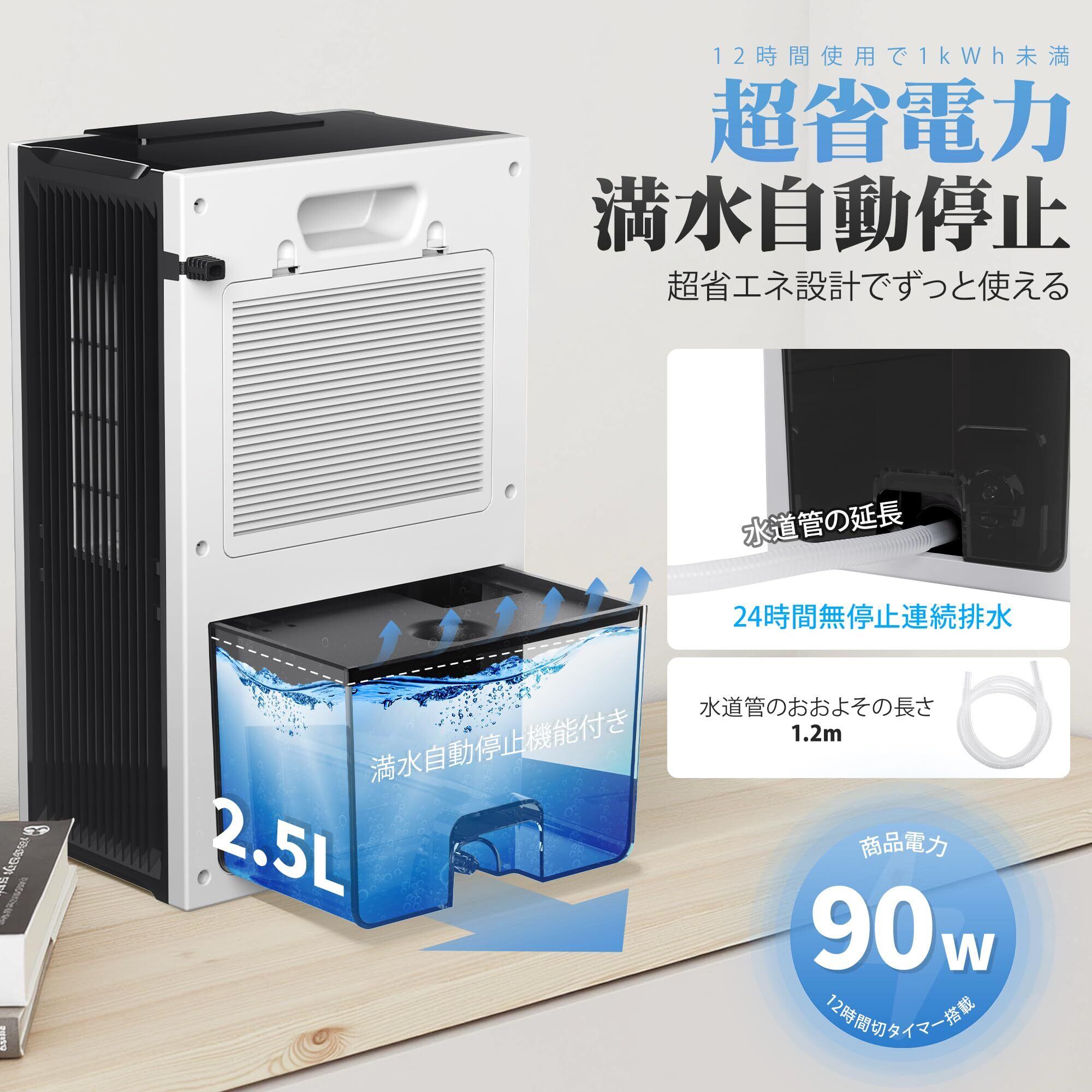 【大容量タンク·スマート機能·自動停止機能付き】大容量タンクを搭載しております(同価格帯平均比150%容量)。自動停止機能とLED水量表示で夜間も管理がラクラクになります。30℃/湿度80%環境下で、750ml/日の除湿能力を発揮できます(※日本工業規格JIS C 9612に準拠)。4/8/12時間の3段階タイマー設定可能で、ちゃんと部屋をじょしつきし、外出時も安心できます。