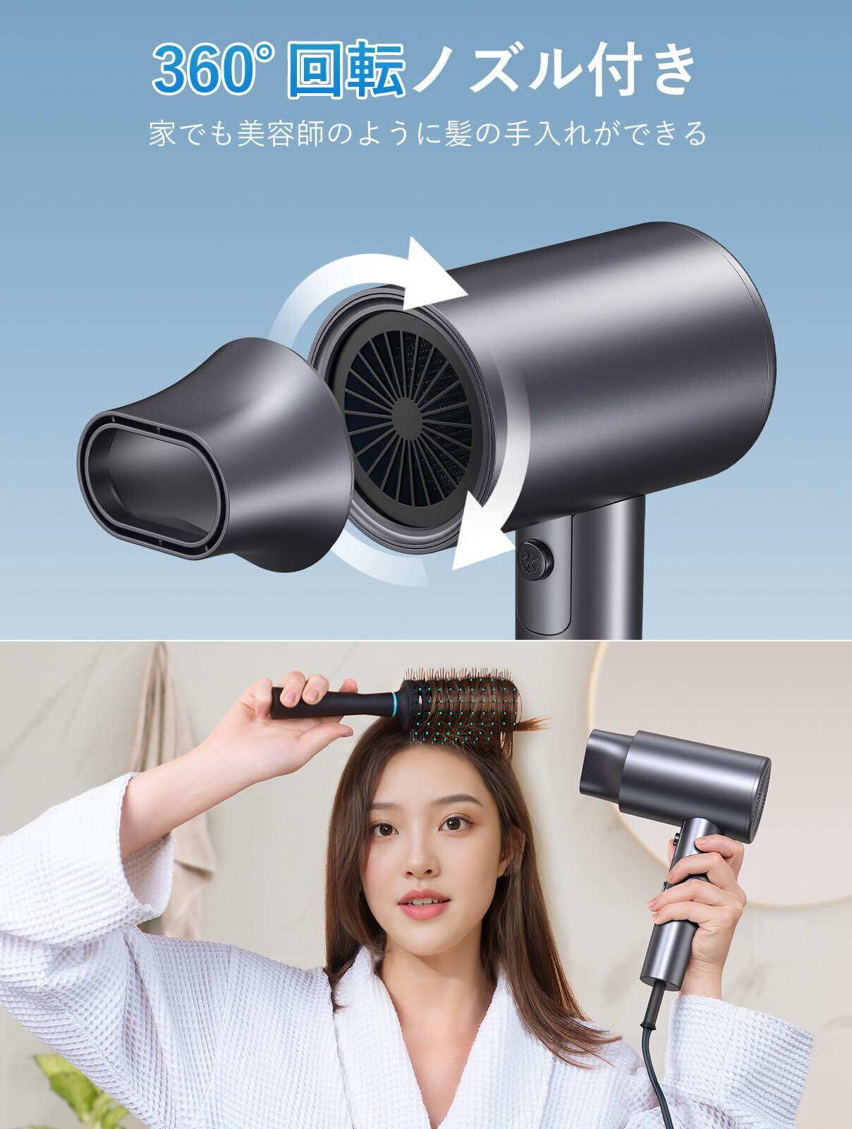 【髪質改善&マイナスイオン】2.7 億個高濃度マイナスイオンを発生し、髪の保湿力を高めると同時に、ダメージヘアの修復・静電気防止にも役立ちます。頭皮ケアから髪の艶出しまでカバーし、シルクのように滑らかでしなやかな髪を簡単に実現。「速く乾かして、美しく保つ」というニーズを完全応える多機能ヘアケアドライヤーです!