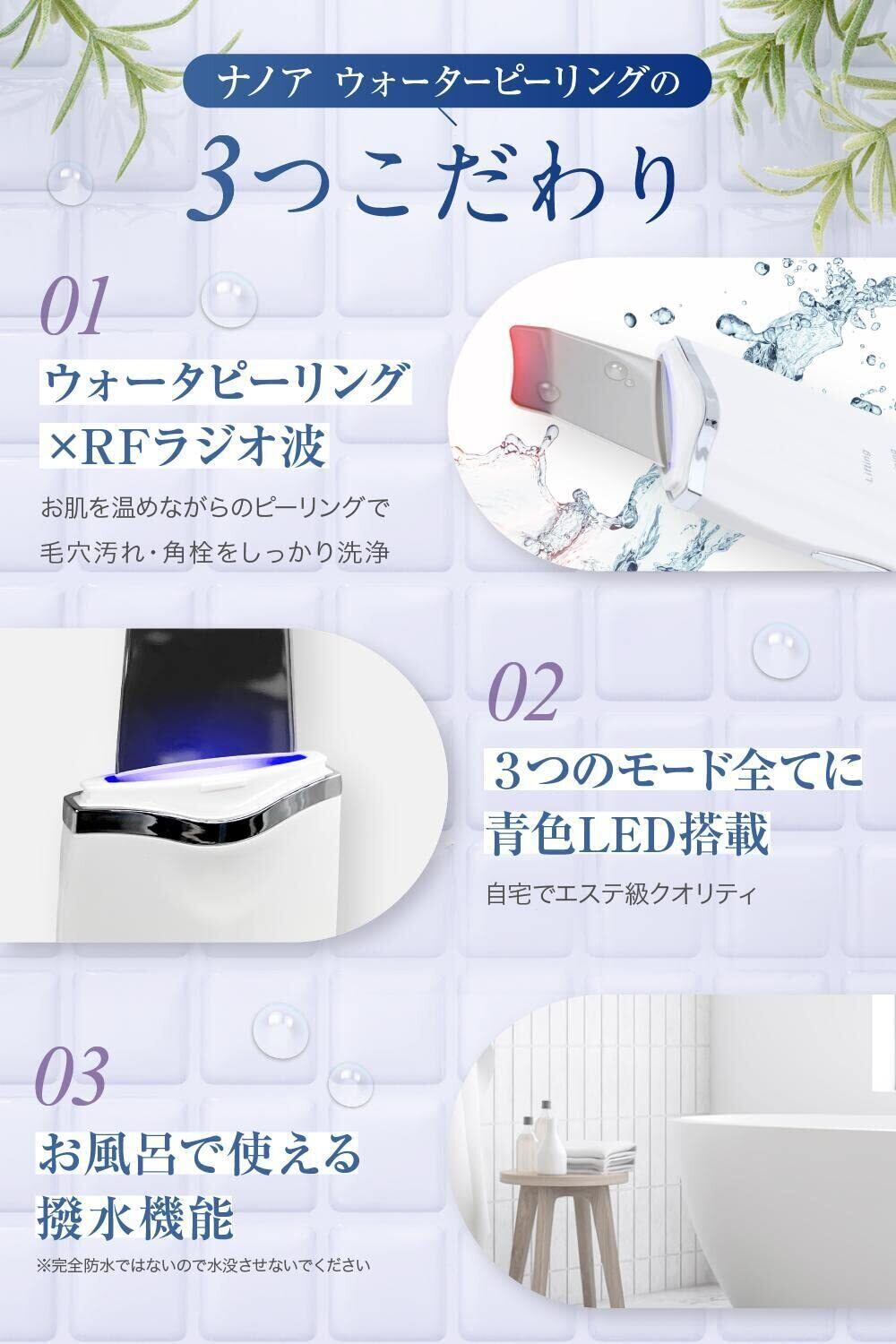 (ナノア)NANOA ウォーターピーリング 皮膚科医が大注目の 超音波美顔器 毛穴 ピーリング 角質取り 顔 毛穴ケア マイクロカレント イオン 美容家電