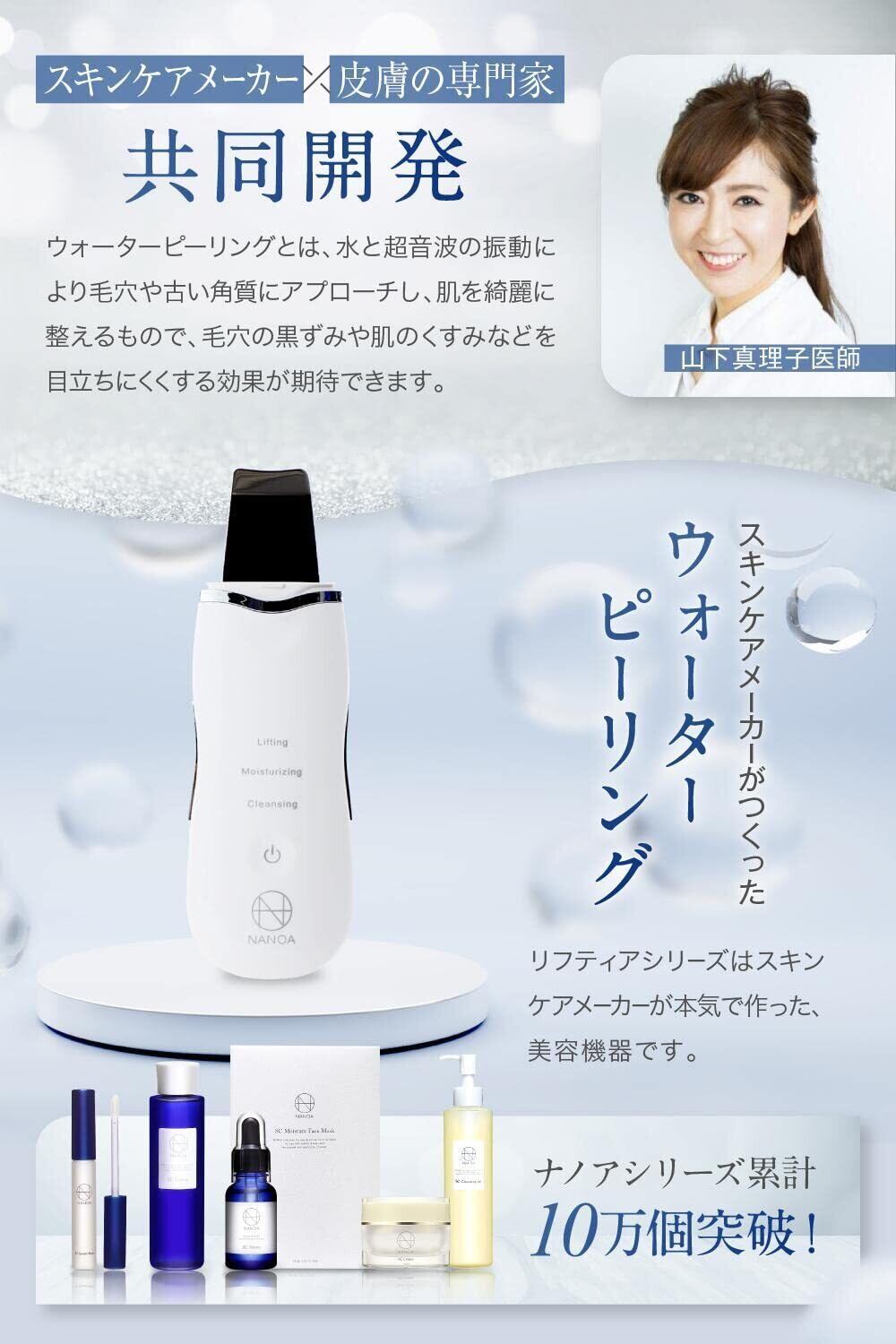 NANOAリフティアウォーターピーリングは、毛穴汚れや黒ずみ、角栓が気になる‥そんなあなたのために美容皮膚科医と共同開発したプレミアムウォーターピーリング美容機器です。