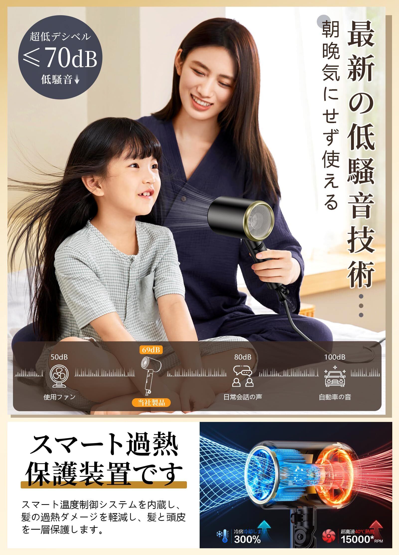 【安全設計・過熱保護機能】NTC過熱保護装置が付き、ヘアドライヤーが危険な温度まで上昇すると自動的に電源を中断することになって危険を免れます、安心して使用できます。高級感のあるデザインで、ギフトにも最適です。シンプルでおしゃれな外観は、男性や女性を問わず喜ばれます。子供やお年寄りにも安心してお使いいただけます。