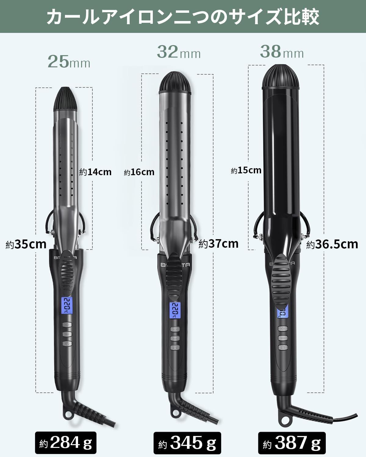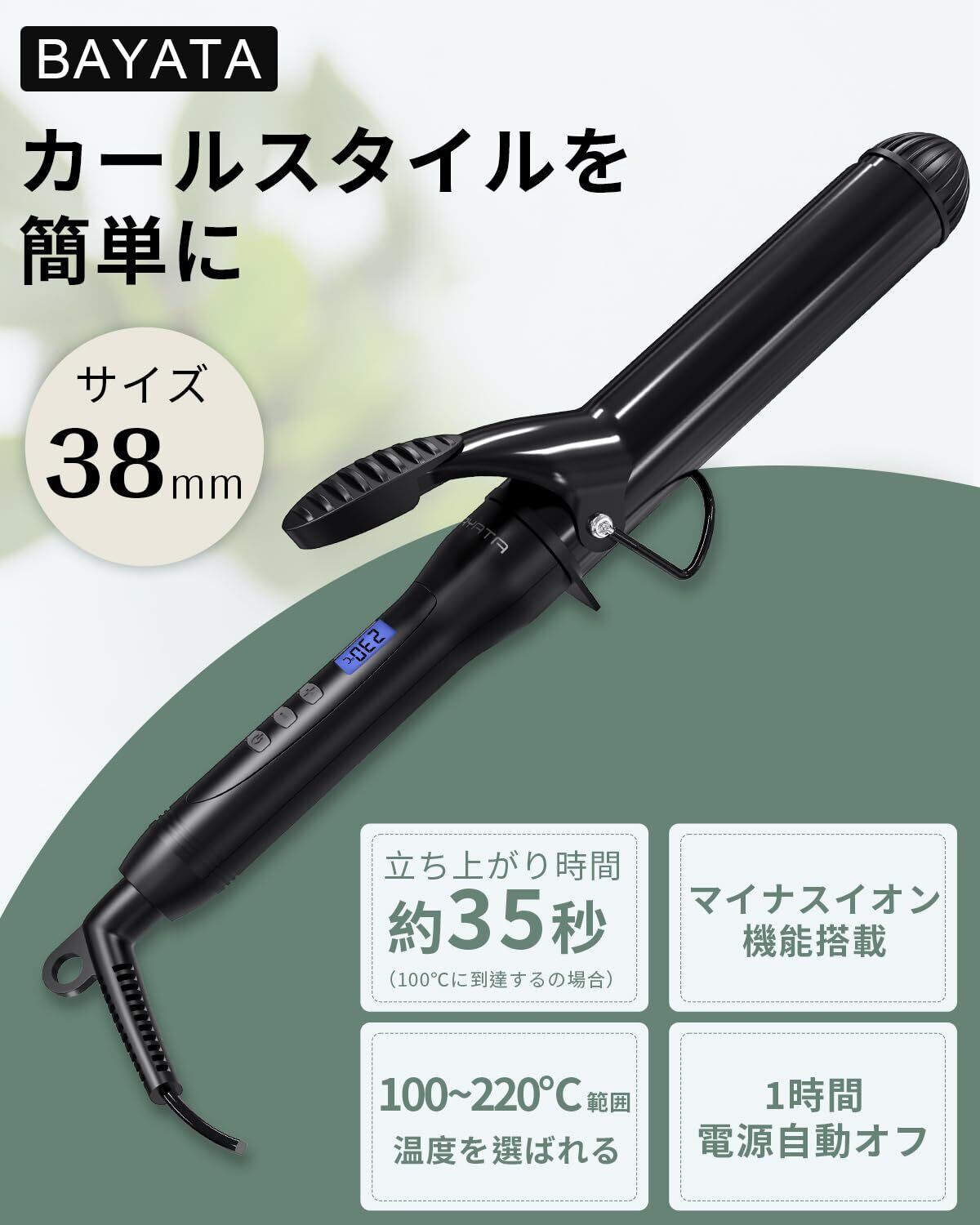 BAYATA コテ 38mm ヘアアイロン カールアイロン 巻き髪 韓国風ヘア 大きめカール 100℃~220℃調節 25段階温度調整 MAX220℃ デジタル温度表示 自動電源OFF 海外対応 PSE認証済み 日本語説明書付き (38mm)
