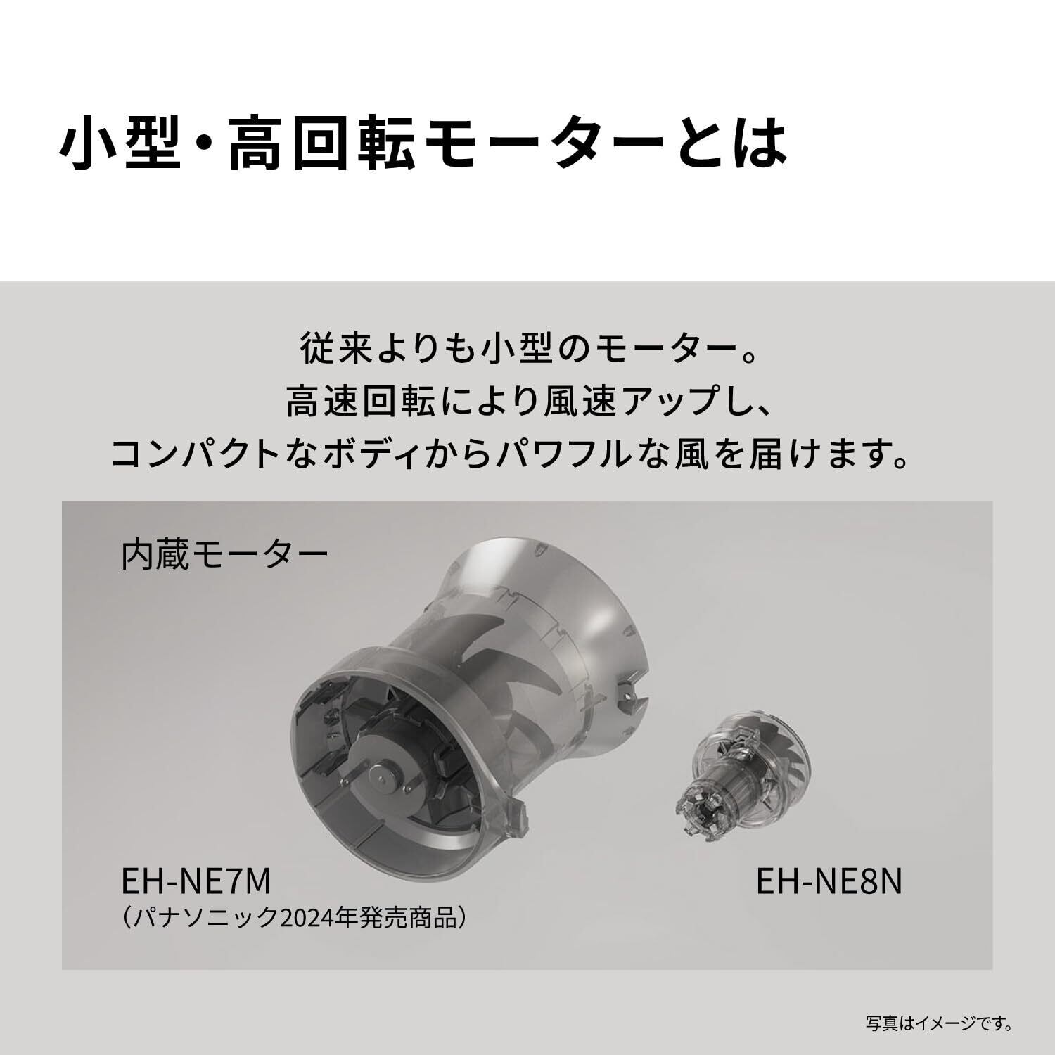 ●使いやすさを求めたコンパクト設計。約17%軽量化(※当社2024年発売EH-NE7M(約550g)とEH-NE8N(約455g)とのコードを含む質量比較(当社調べ)※)、体積比約46%減(※当社2024年発売EH-NE7MとEH-NE8Nとのブッシング以降のコードを含まない体積比較(当社調べ)※)。