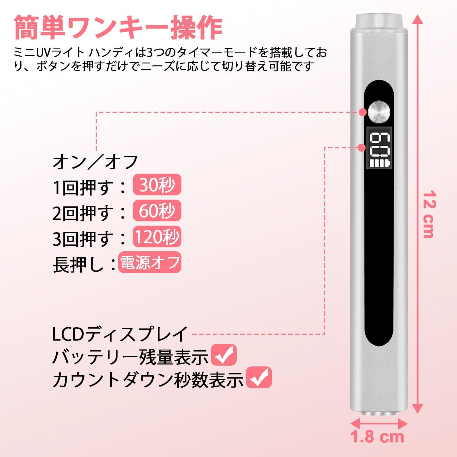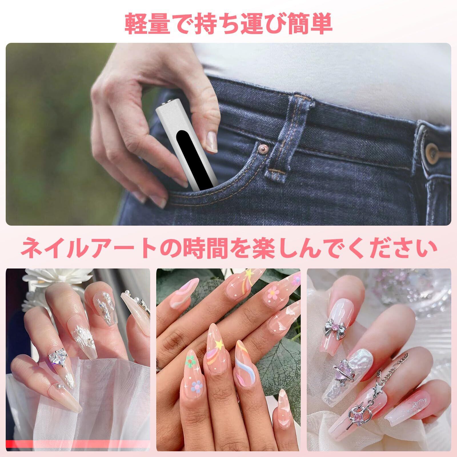 持ち運びやすく、使いやすい:ミニネイル ledライトのサイズは12×1.8cm。メタル製のボディはスタイリッシュで上品なデザインです、小型で携帯しやすいデザインです。400mAhの充電式リチウムイオンバッテリーを採用し、フル充電で84分間の連続使用が可能。旅行中でも気軽に持ち運べて、いつでもどこでもネイルアートを楽しめます!
