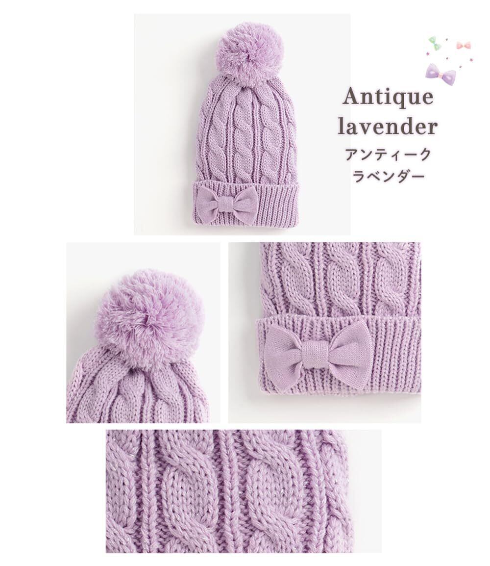 [アリサナ] ニット帽 キッズ ケーブルニット 子供用 女の子 リボン 防寒