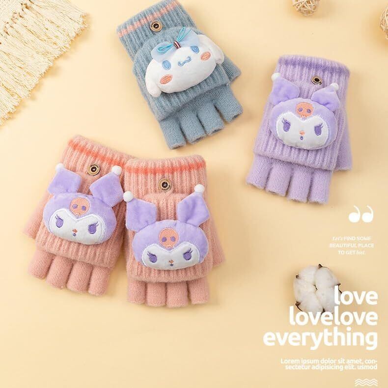 【数量限定】[THEBEASTPIE] クロミ シナモロール ポムポムプリン マイメロディ 手袋 子供 冬 防寒 保温 スマホ対応 ボア 裏起毛 通勤 通学 旅行 自転車 バイク アウトドア 誕生日 クリスマス プレセント 冬小物 アウトドア 必需品 2way手袋
