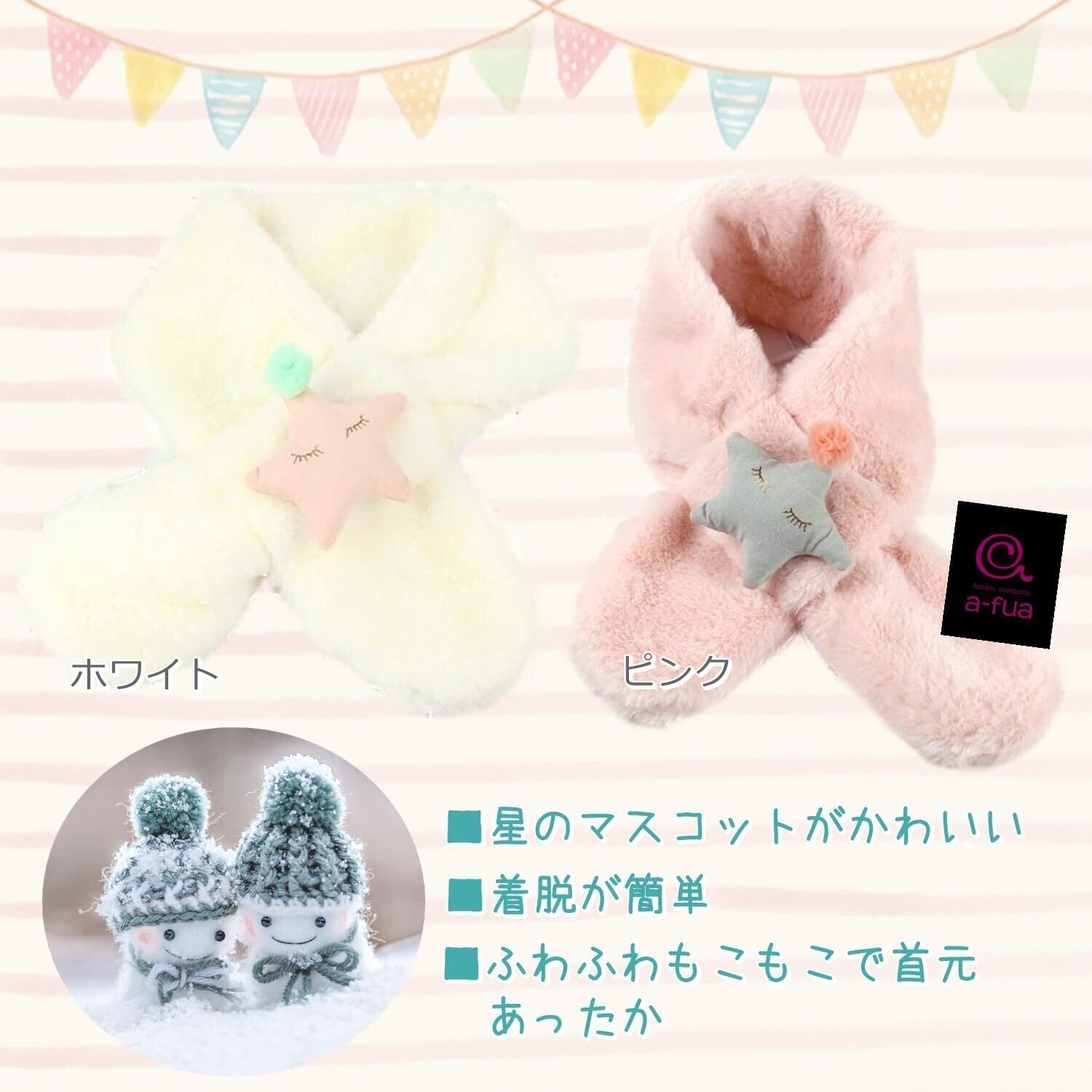 【人気商品】[a-fua] 女の子 マフラー もこもこ キッズ フェイクファー ふわふわ ガールズ クロス 差し込み ネックウォーマー 暖かい 防寒 星 飾り