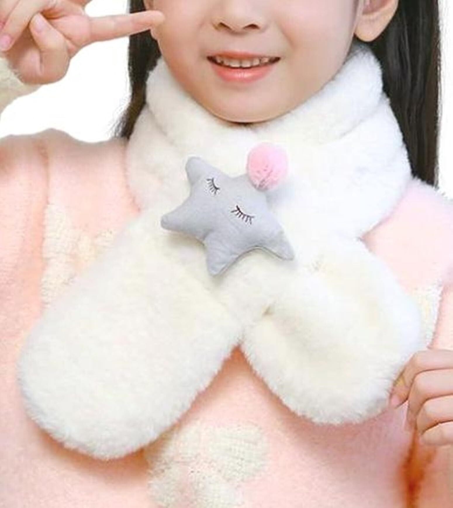 [a-fua] 女の子 マフラー もこもこ キッズ フェイクファー ふわふわ ガールズ クロス 差し込み ネックウォーマー 暖かい 防寒 星 飾り