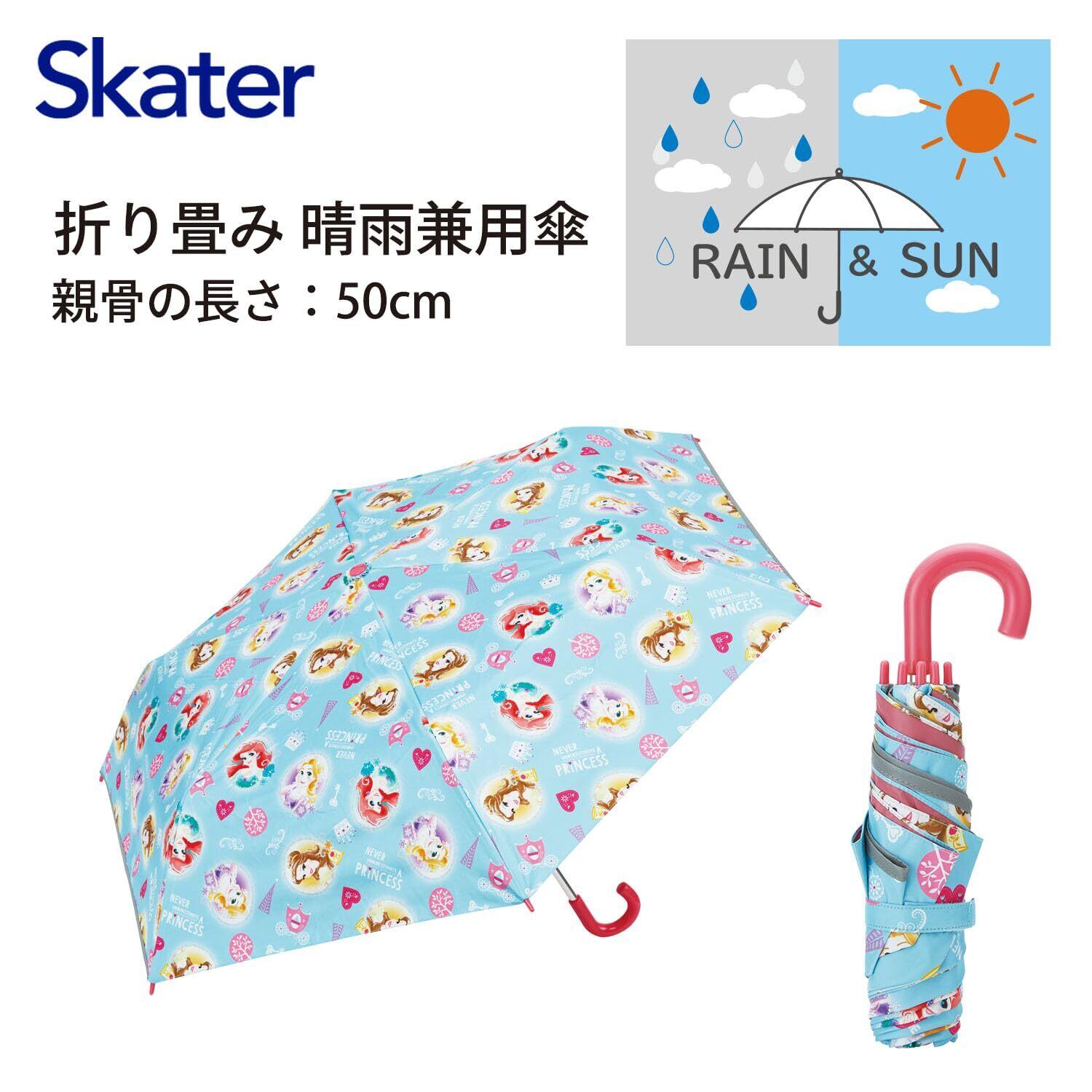 スケーター(Skater)子供用 日傘 折りたたみ 50cm プリンセス 7~8才向け 約115~125cm 小学生 指を挟みにくい手開き式 専用カバー付き UVカット 6本骨スケーター(skater) ディズニー 女の子 晴雨兼用傘 専用収納ケース付き UBOTSR1-A