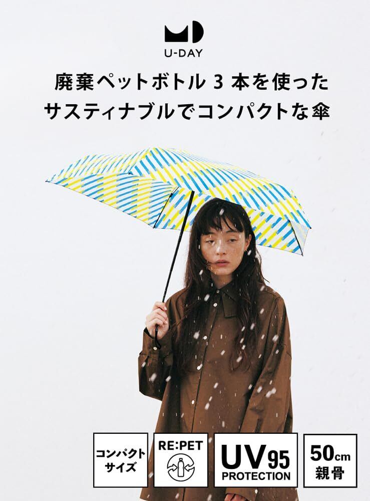 ペットボトル再生生地を使用したサスティナブルでコンパクトなサイズの折りたたみ傘