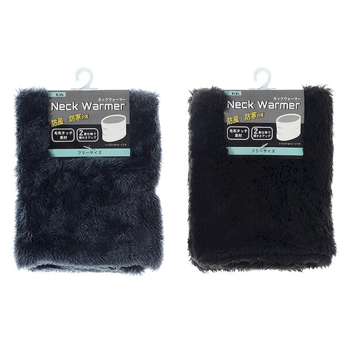 [Shiroite] 【防風・防寒対策に】 キッズ 極柔らかネックウォーマー 無地2重 あったかい 二重仕様 無地 子供用 フリーサイズ 2色アソート(ブラック・ネイビー) 【2個セット】