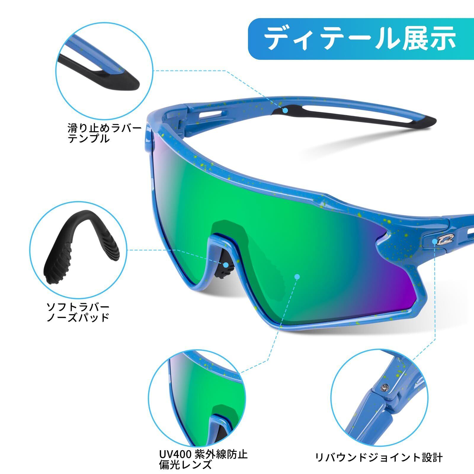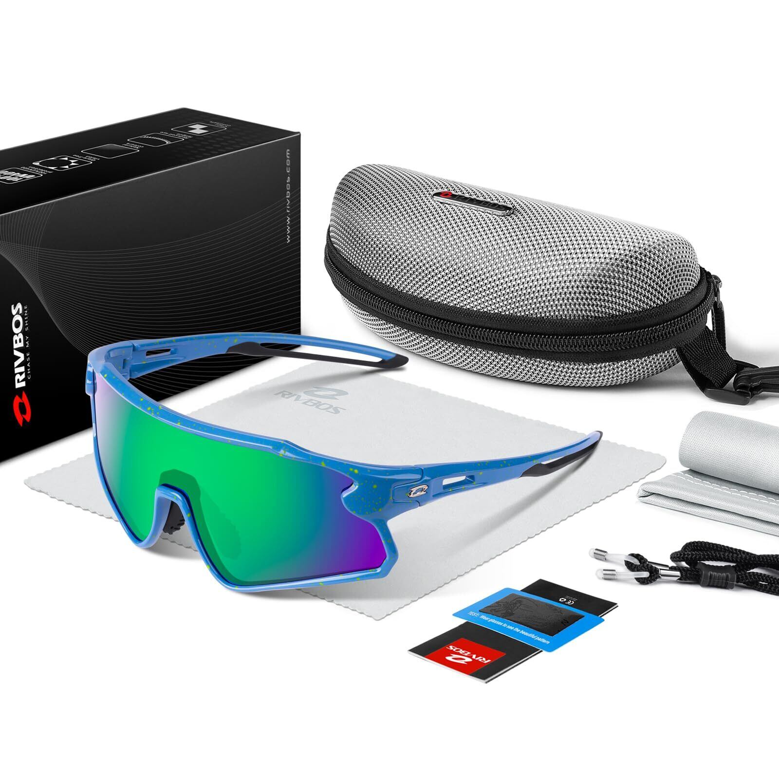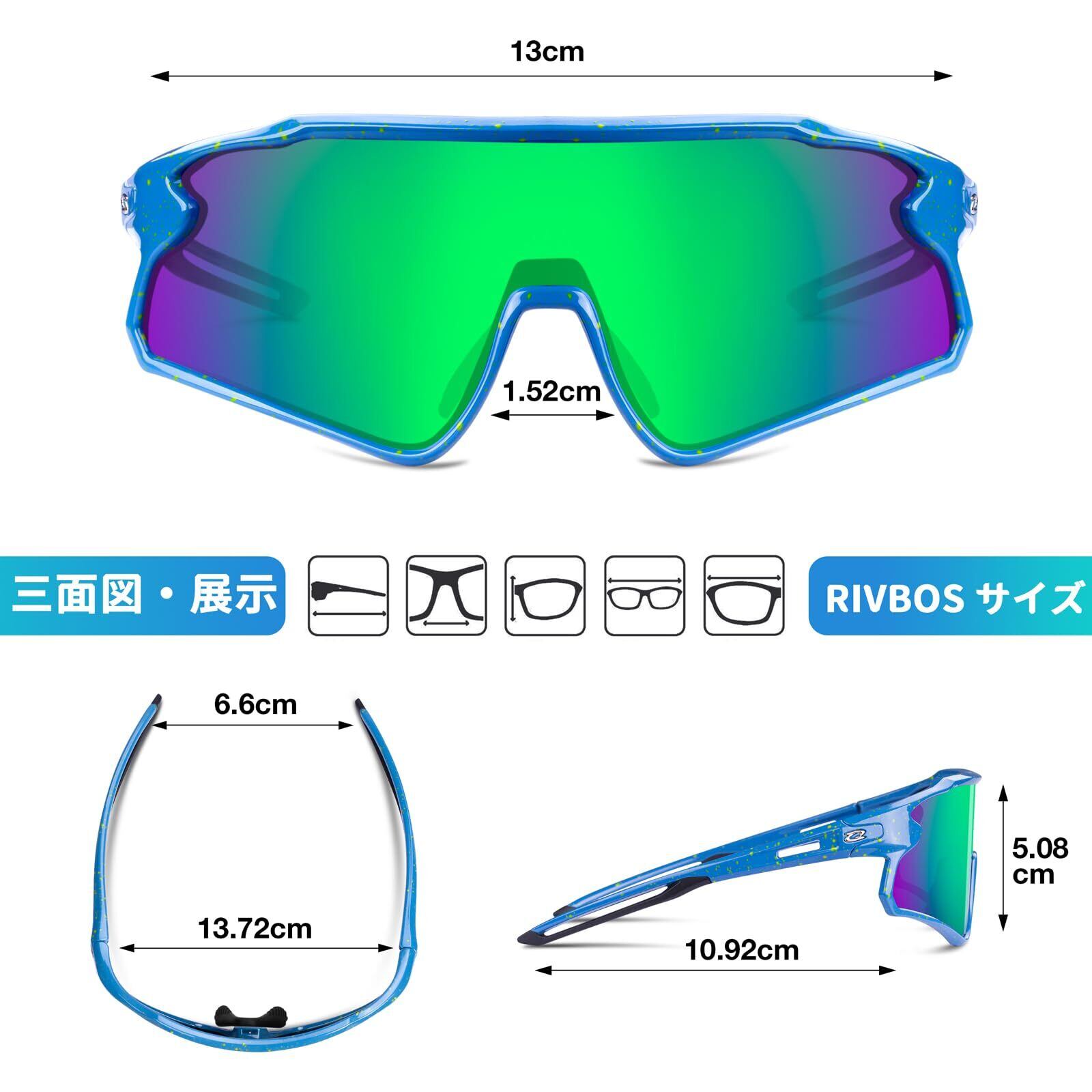 【スポーツ向けに設計】RIVBOSサングラスは幅広のレンズを備えており、より広い視野を提供するだけでなく、運動中の風の抵抗力を減軽し、紫外線、ほこりから目を最大限に守る!レンズの彎曲したデザイン 空気抵抗が少ないので、野球、ゴルフ、サイクリング、ランニング、登山、ハイキング、レース、ゴルフ、釣りなどのアウトドアスポーツに最適。