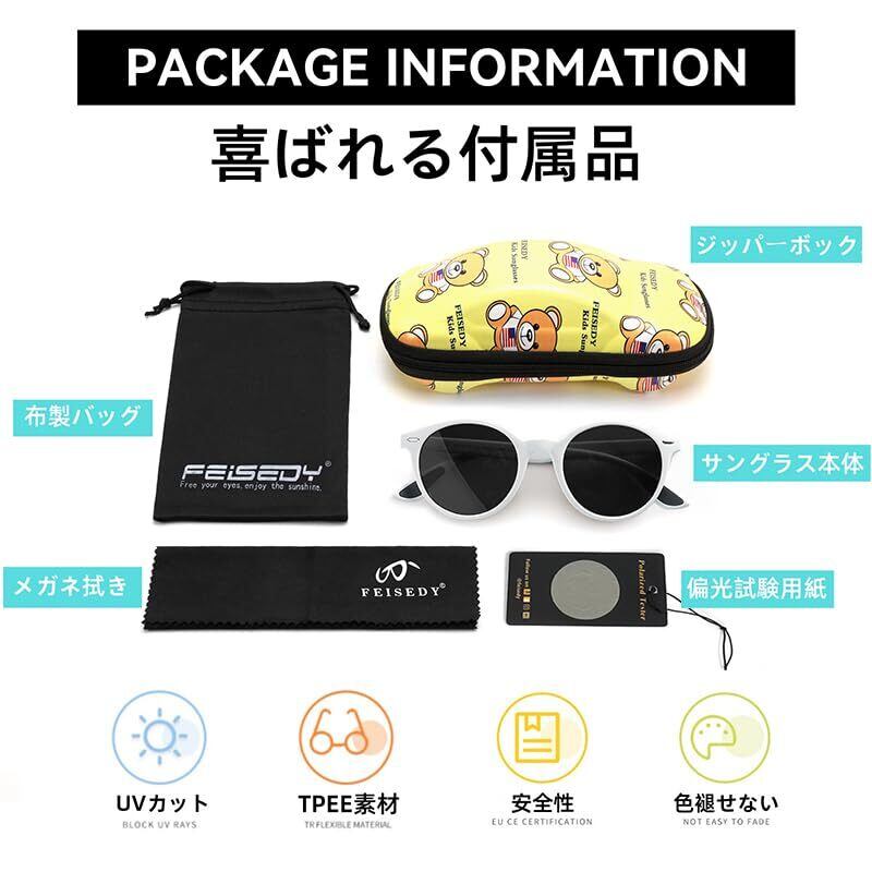 【2022最新】[FEISEDY] キッズ 偏光 子供用サングラス スポーツ サングラス TAC偏光 UV400 紫外線カット 可愛い 丸型 超軽量 19g TPEEフレーム 野球 釣り 登山 自転車 サイクリング B1410