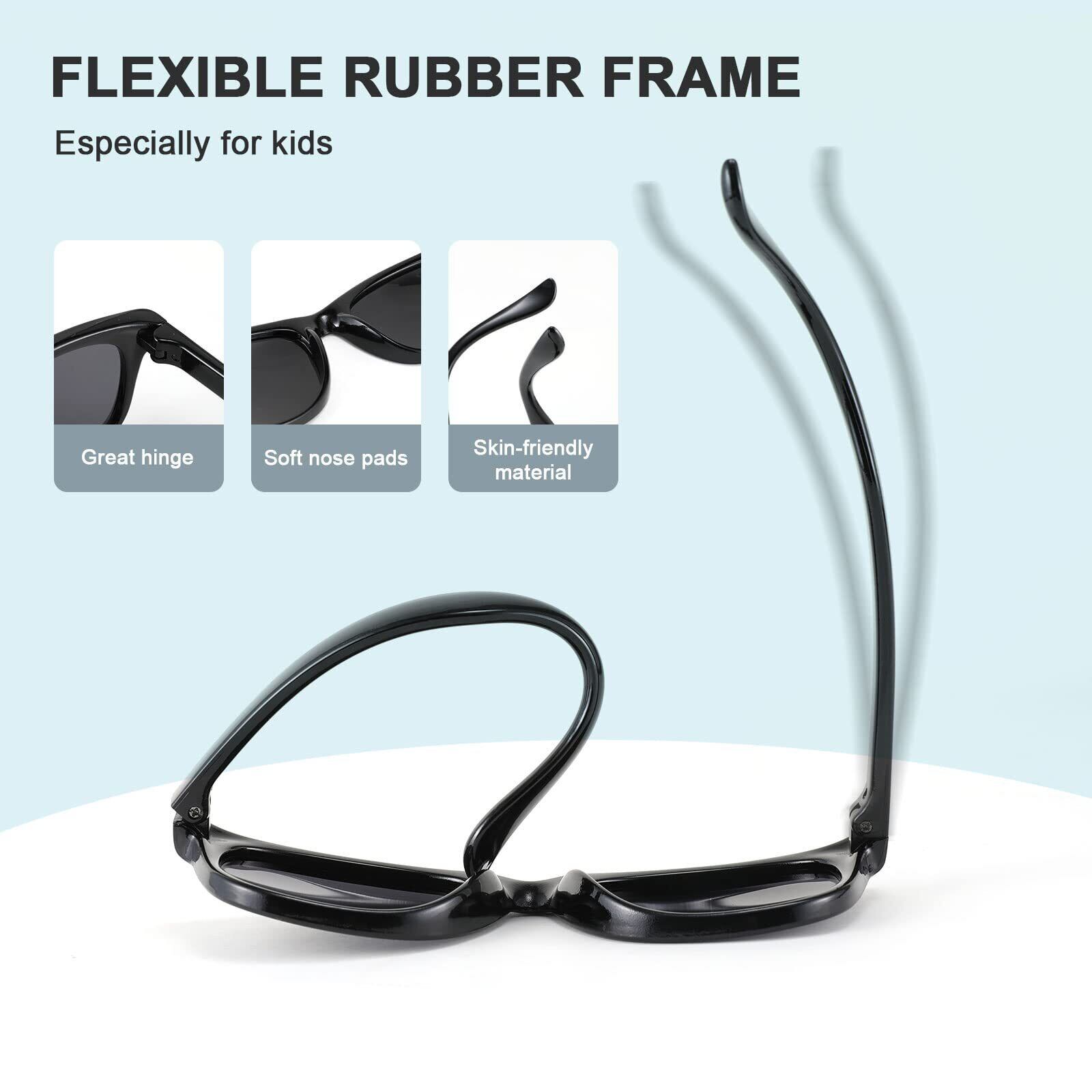 柔らかく高品質の素材-FEISEDYキッズサングラスはTPEEラバーフレームでできており、柔軟性があり、壊れにくく、柔らかさがあります。ワンピースのノーズパッドは、長時間の快適な着用をし、屋外で遊んでいる間、お子様の目を素晴らしく保護することができます。 3〜12歳に最適です。