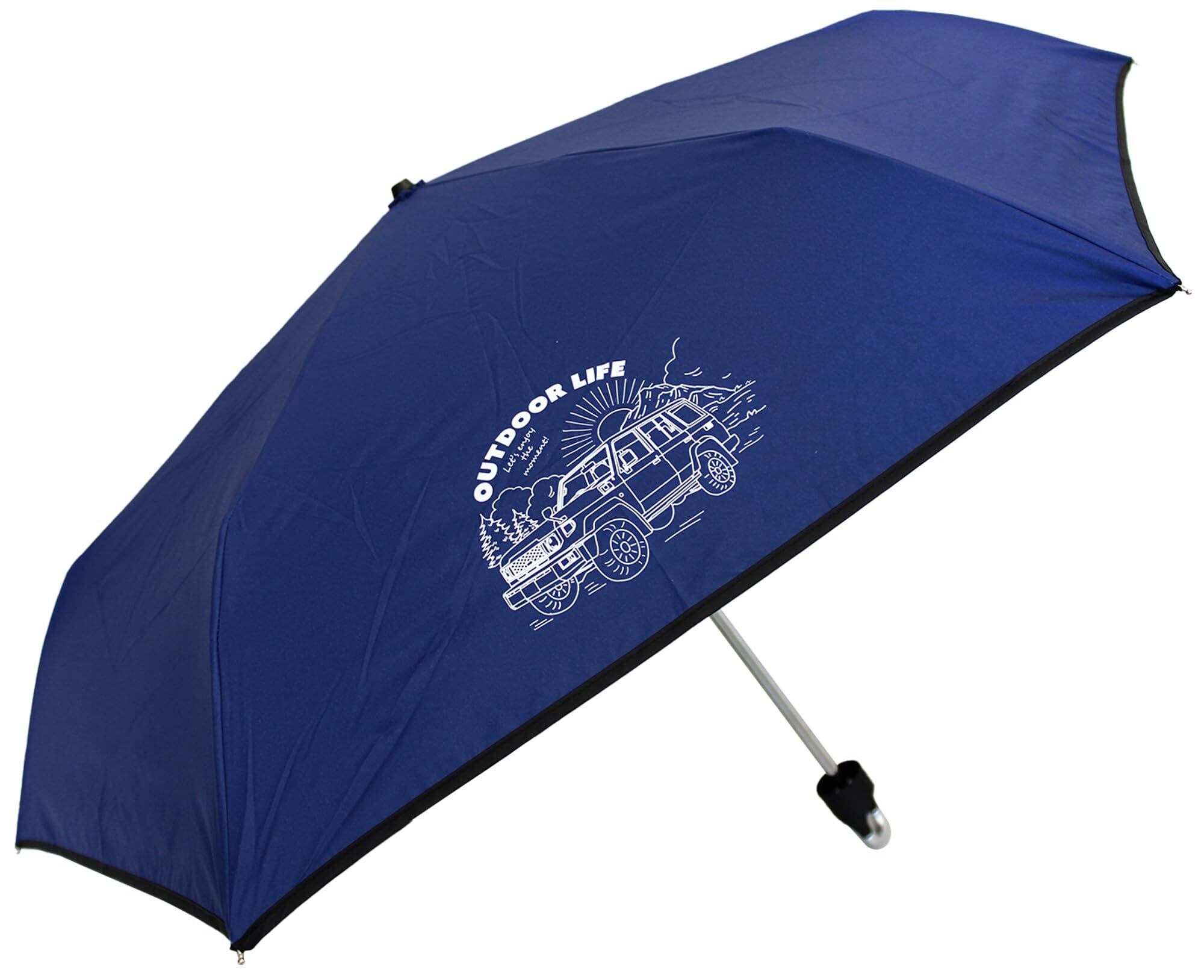 折りたたみ傘 日傘 晴雨兼用 子供 男の子 キッズ 便利 カラビナフック 親骨 55cm 内側コーティング UV99.9%カット 一級遮光 UPF50+ 遮熱 軽量 アルミ 丈夫 ファイバー骨 アウトドア ロゴ ネイビー