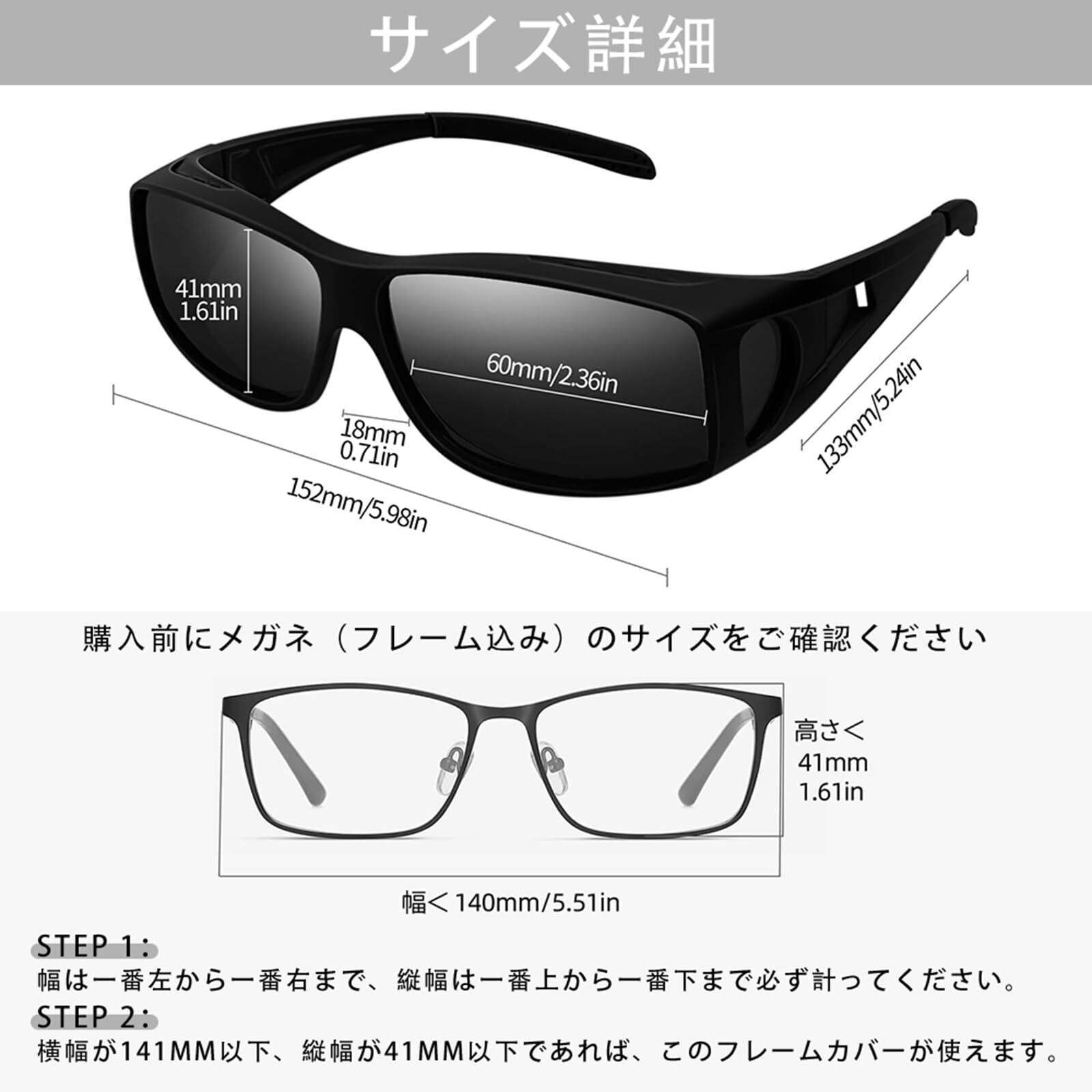 メガネの上からオーバーサングラス:眼鏡着用者へのサングラス。近視、遠視、老視の眼鏡かけた人もご利用できます。ゆったりとした構造で圧迫感がありません、掛け心地良い