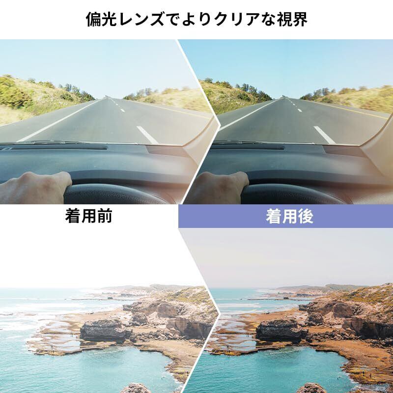 【 UV400&HD偏光レンズ】高品質の偏光レンズはUVA・UVB・UVC等の有害光を99%カットし、可視光しか通しません。あなたの眼を紫外線や乱反射光から守ります。 雪天気、雨天、曇りの日に強烈に降り注ぐ日差し、雪面、路面、水面、からの照り返し、運転や釣り等でガラスやギラギラを効か的にカットし、クリアな視界を提供します 。