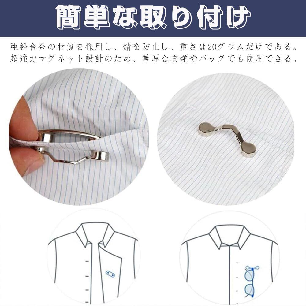 【磁力安定】:製品の磁力は強く、厚い衣類にしっかり吸着でき、首周りのロープとは異なり、任意の場所に置くことができ、緩みません。
