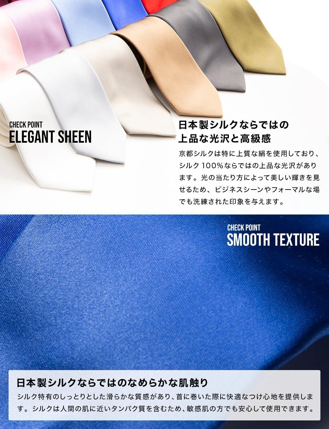 京都シルク100%、日本製だからこその高級な光沢と厚みに自信あり。