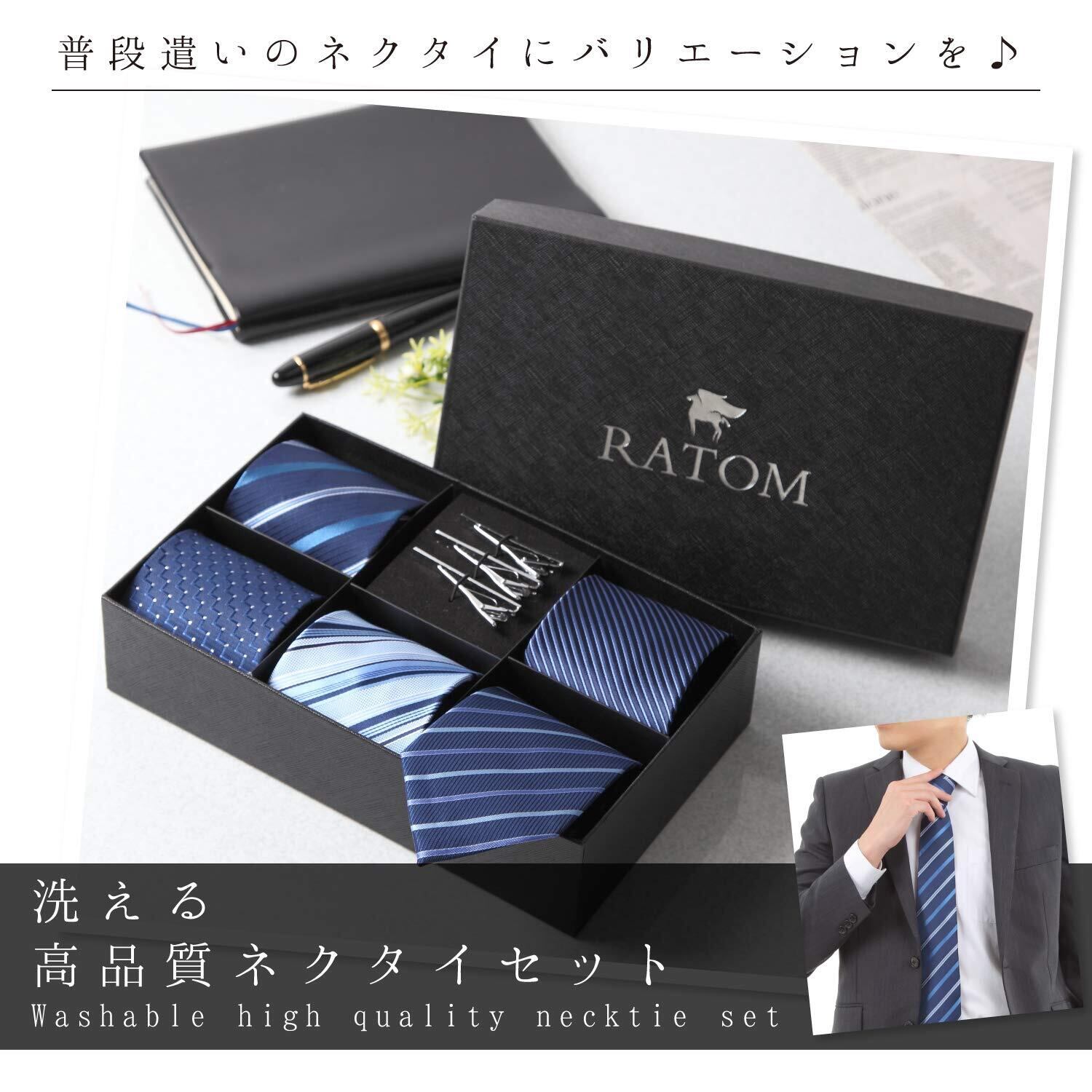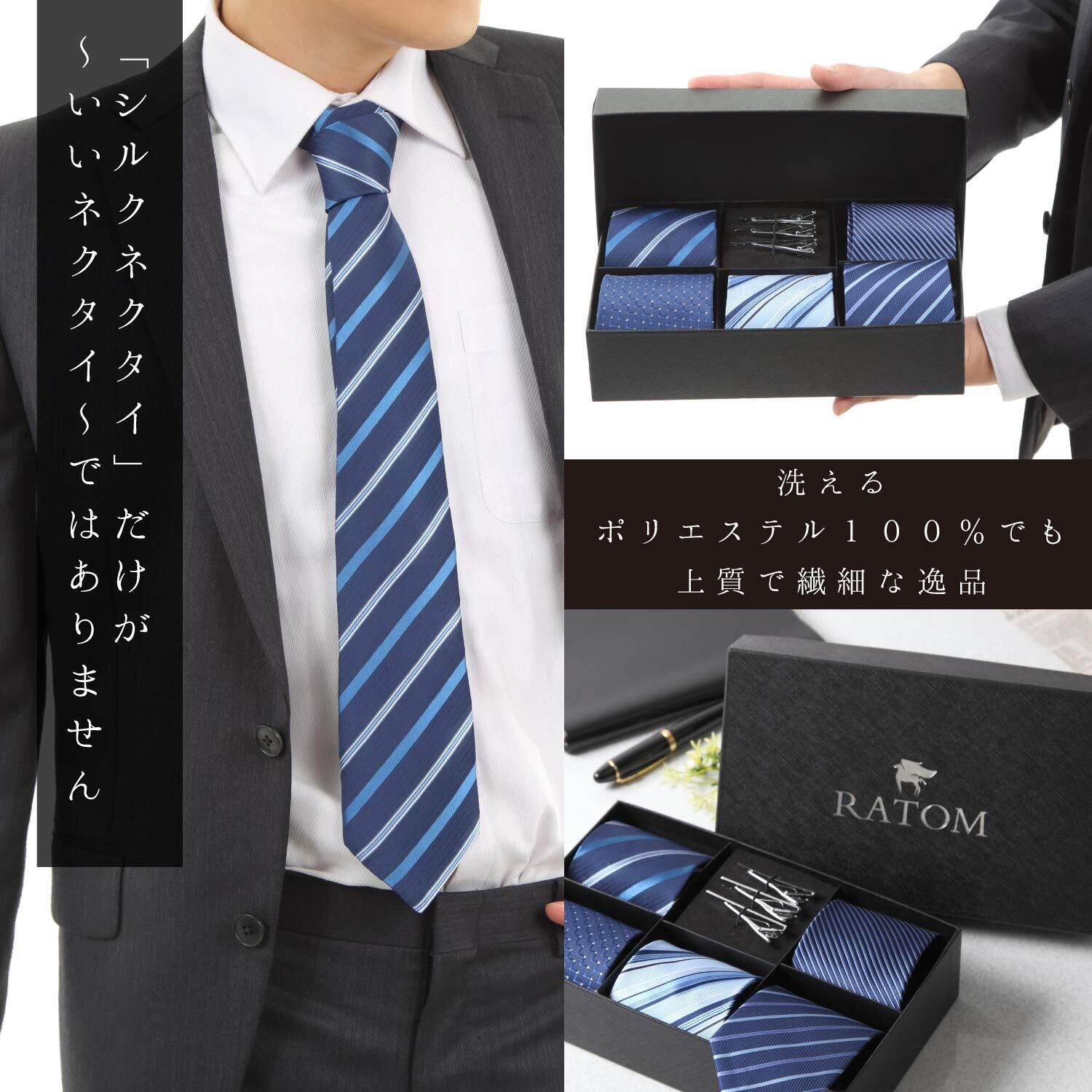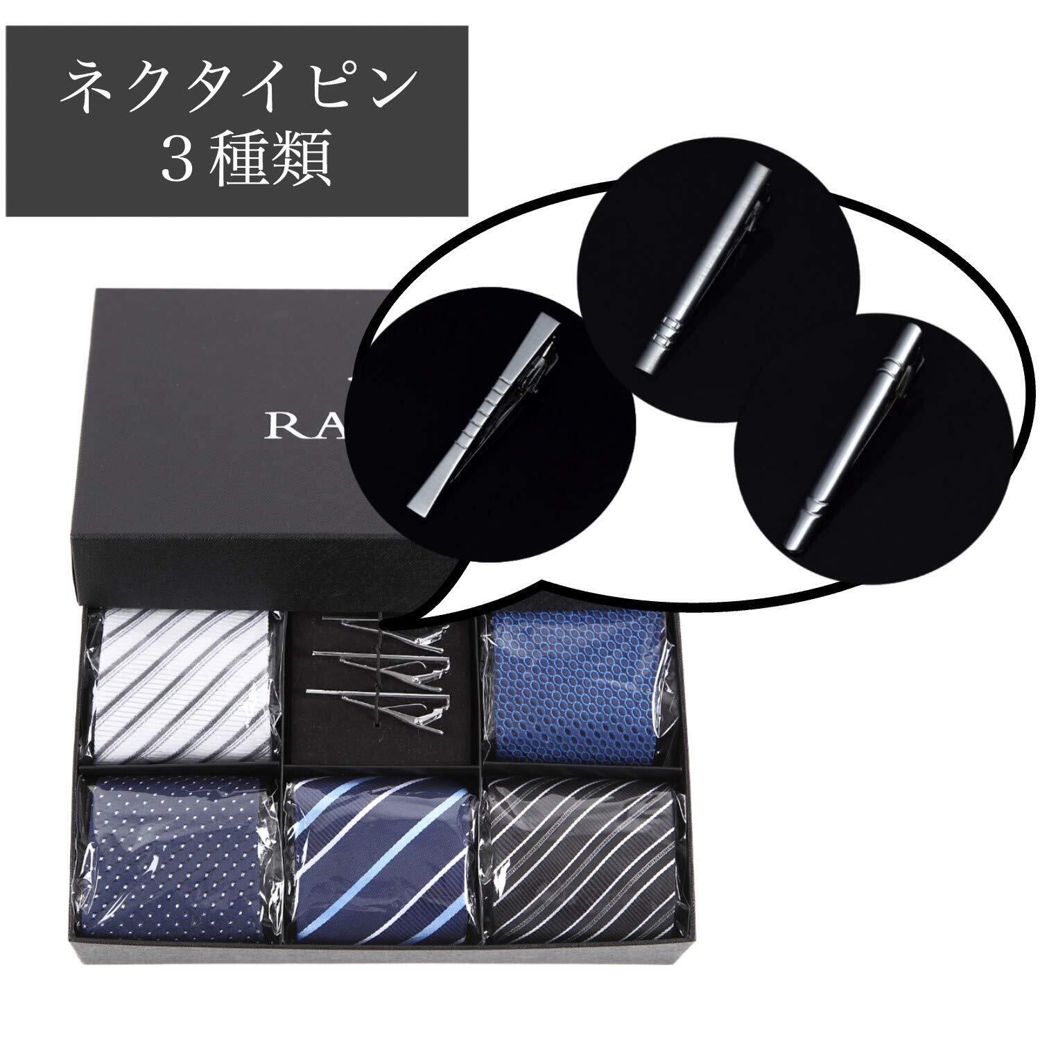 【2022最新】[RATOM] ネクタイピン ネクタイ セット【ネクタイ5本+ピン3本+ギフトボックス、洗濯OK】 (ブラック系)