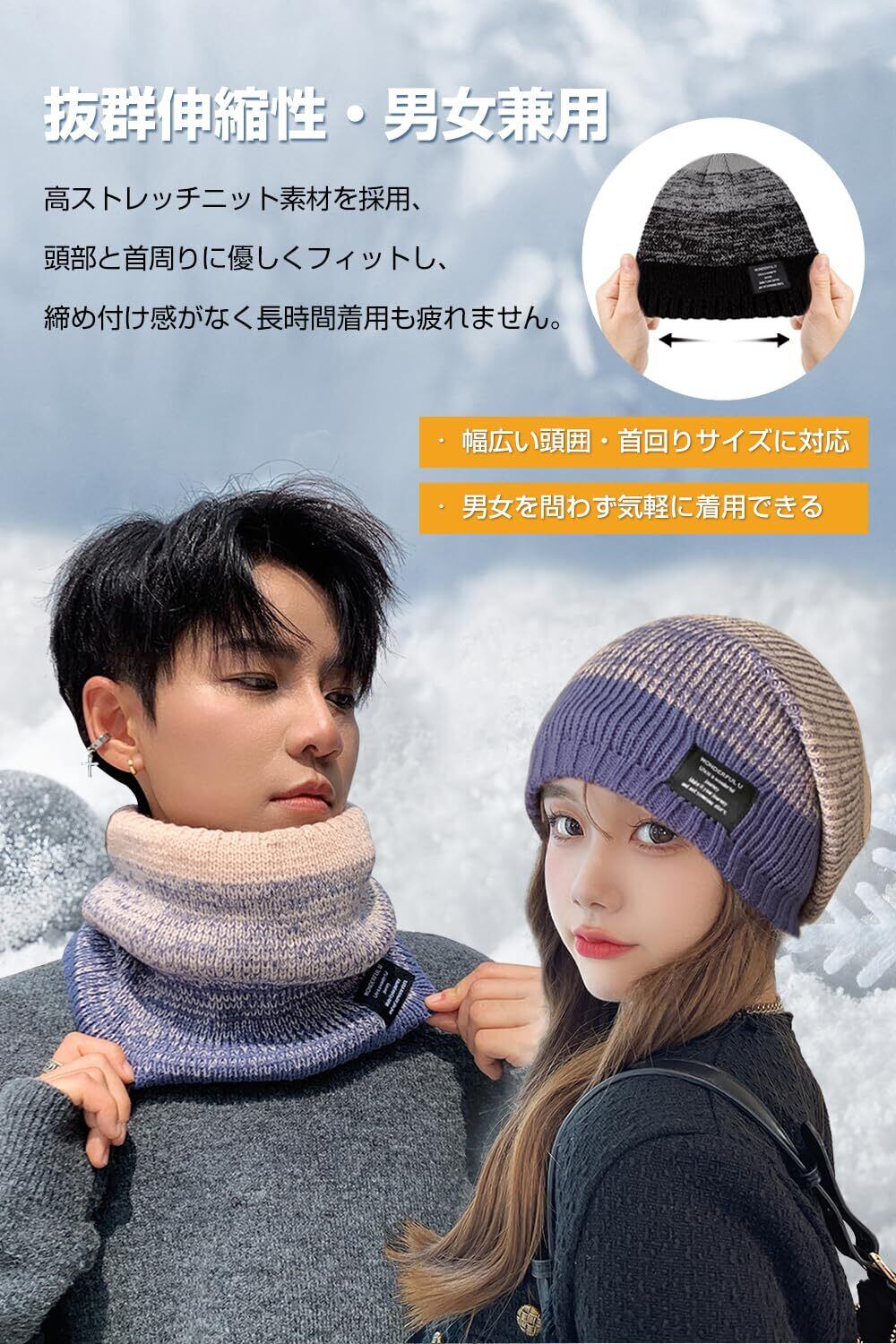 [SooPii] ニット帽 メンズ ニット帽&ネックウォーマー 二点セット冬【ふわふわ裏起毛・二層構造・防寒保温】 帽子 メンズ 柔らかい 伸縮性 通勤/通学/自転車/バイク/スキー/スポーツ/アウトドア 男女兼用
