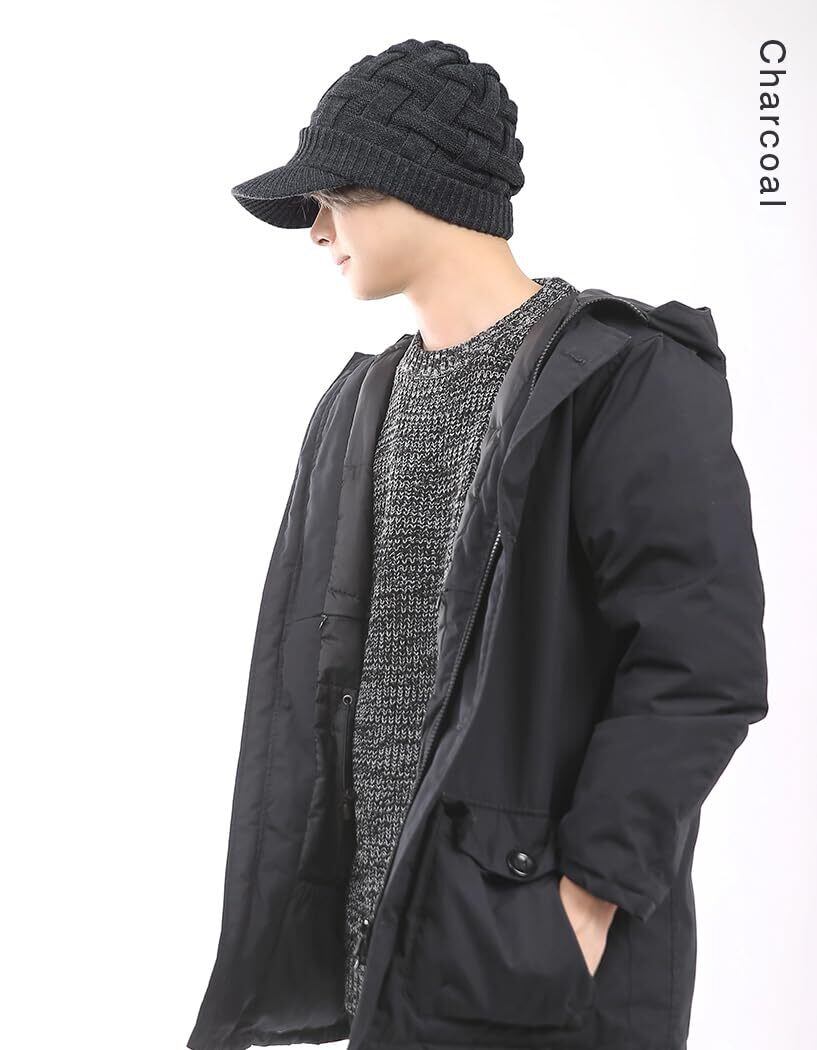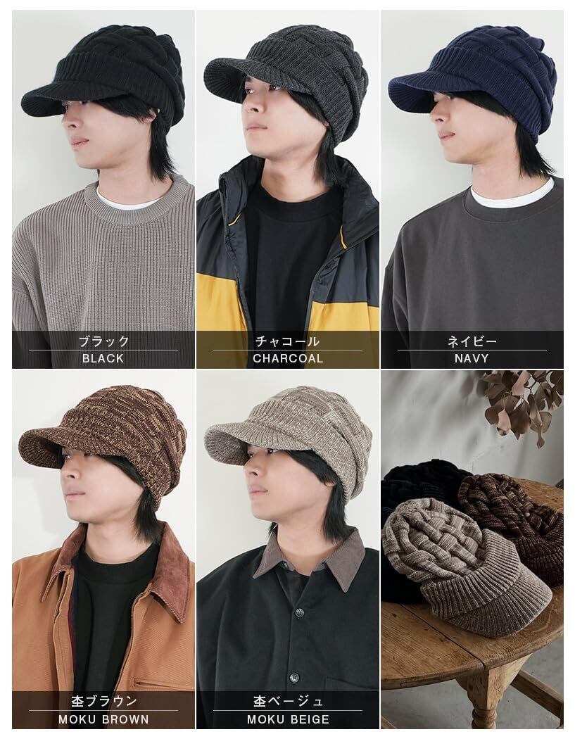 [ルーアンドシー] つば付き ニット帽 大きいサイズ メンズ クロスニットキャスケット 帽子 ゆったりサイズ ワッチ ニットキャップ レディース 防寒 耳あて ユニセックス