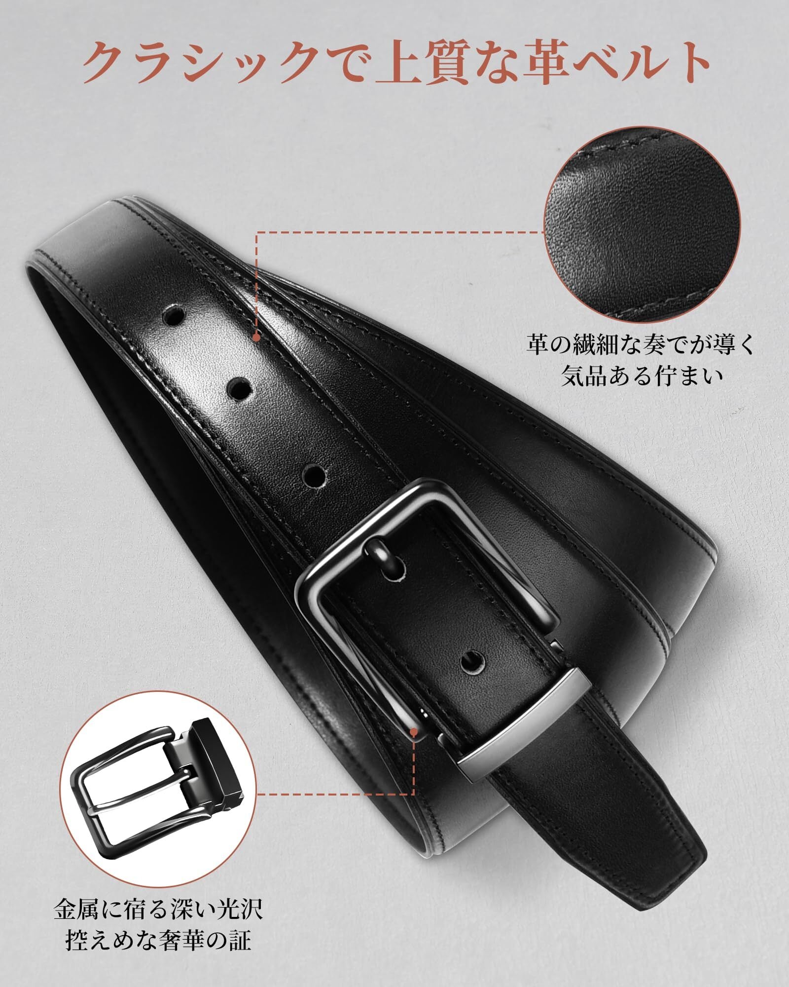 【ビジネス&カジュアル対応】スーツに映える上品さから気軽な装いまで、あらゆるシーンで品格を演出。一本でビジネスからカジュアルスタイルまで幅広く寄り添う、成熟したbelt for men。