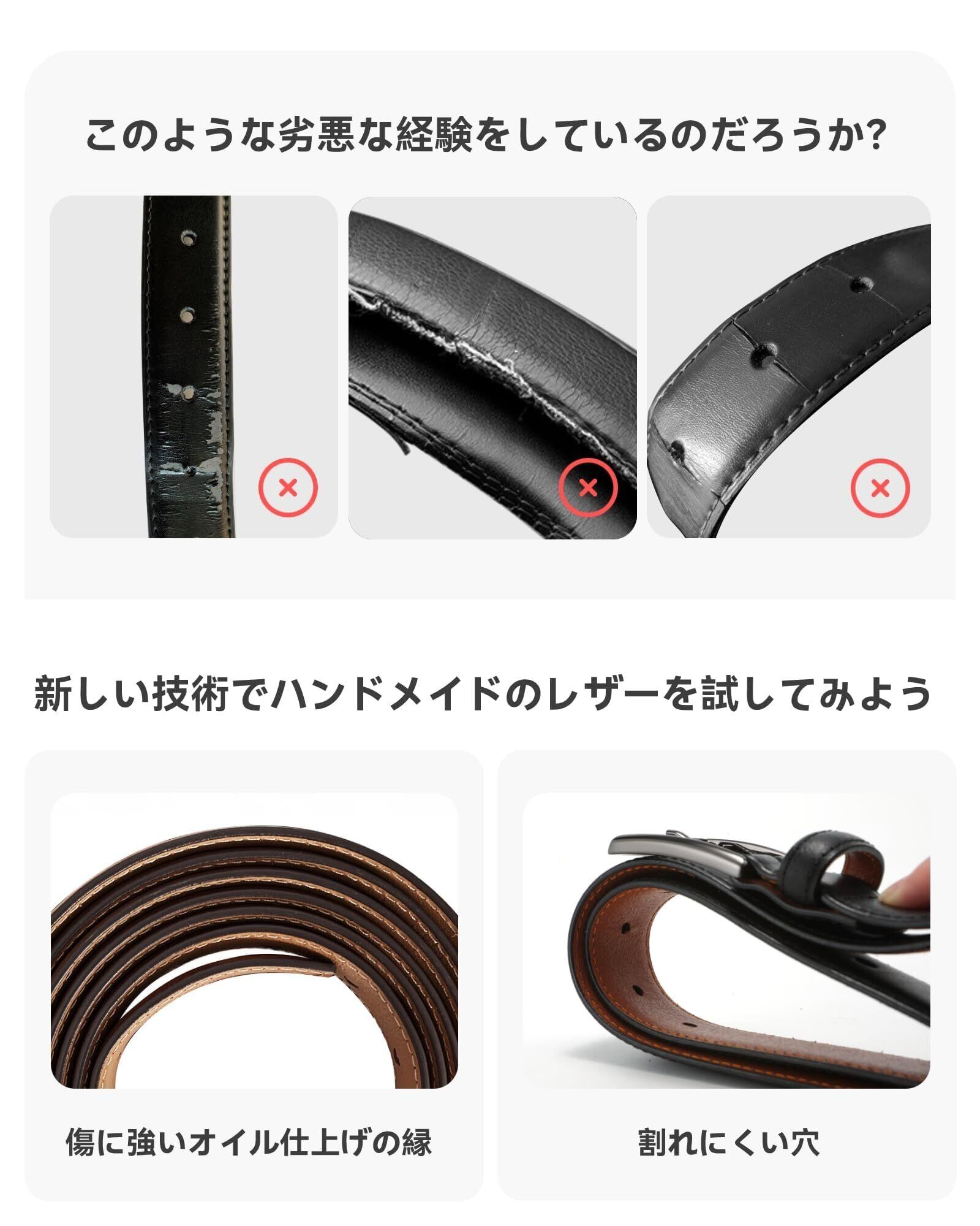 【優れた品質】高品質な合金製バックルヘッドを採用したスーツ用ベルトです。長時間の使用でもバックルヘッドにダメージを与えない。 厚みを増したレザー。 高い耐久性。 普段使いのベルトとしても使用できます。