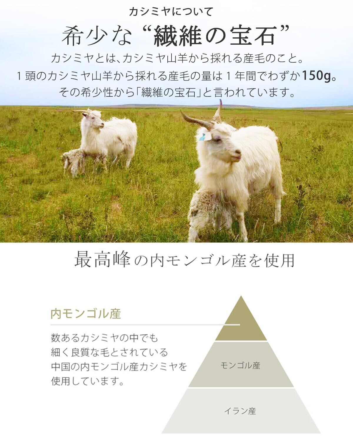 カシミヤの中でも最高峰とされる内モンゴル産の毛を使っています。