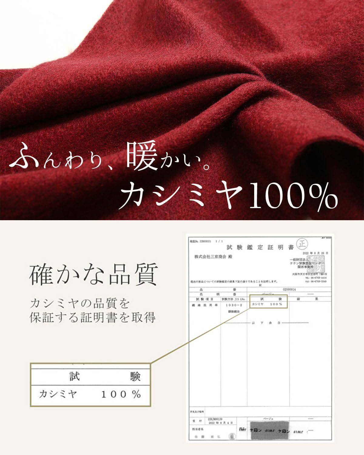 【最高峰カシミヤを100%使用】数あるカシミヤの中でも細く良質な毛とされている中国の内モンゴル産のカシミヤを使用。軽くて暖かい心地い肌触りのマフラーです。