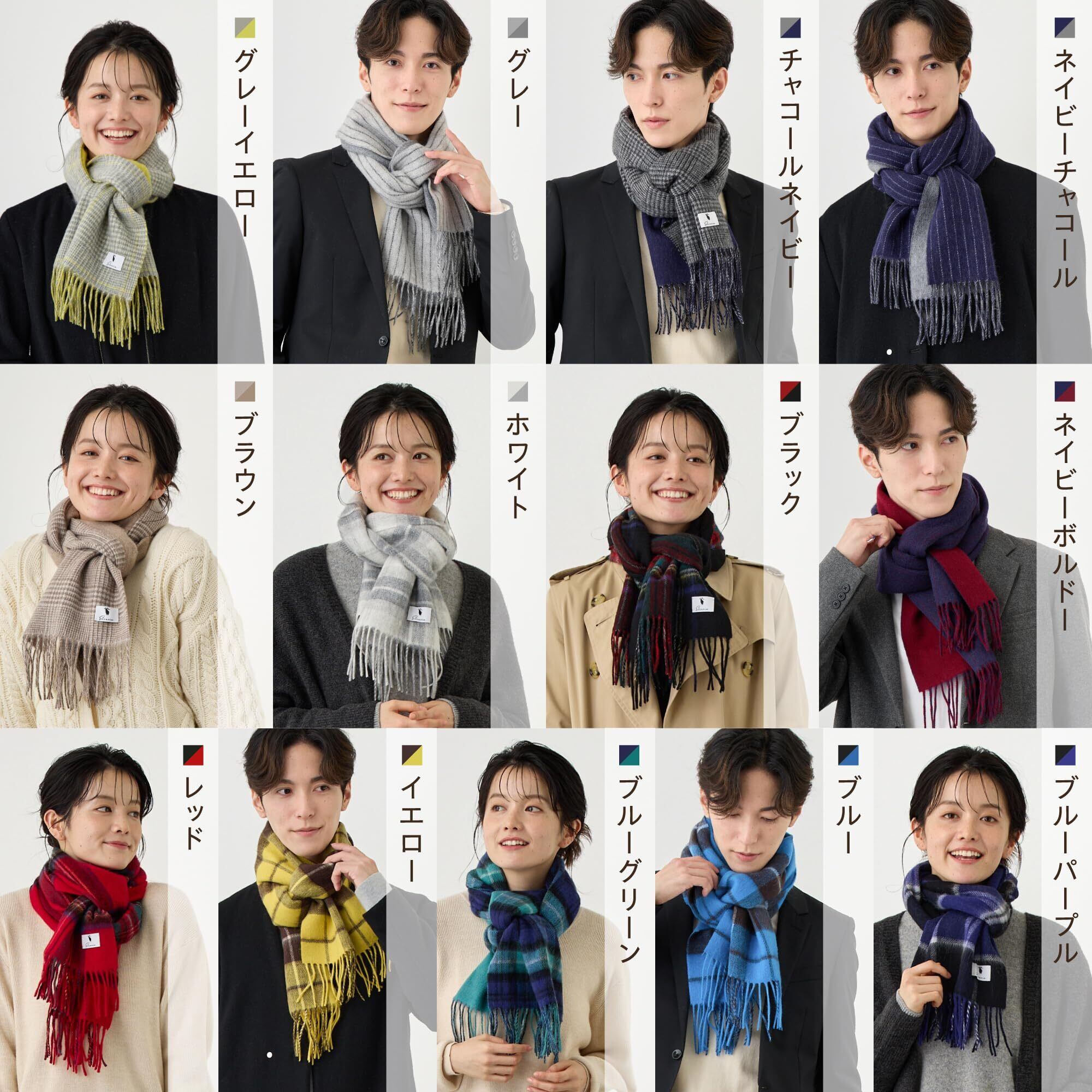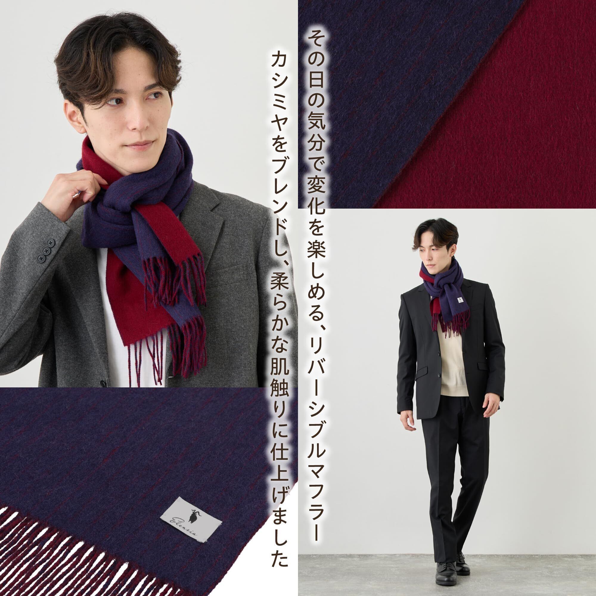 [Elensia] エレンシア ウール カシミヤ ブレンド リバーシブル マフラー レディース メンズ 洗える UVカット98%以上 チェック 30×186cm 160g 全13色 プレゼント