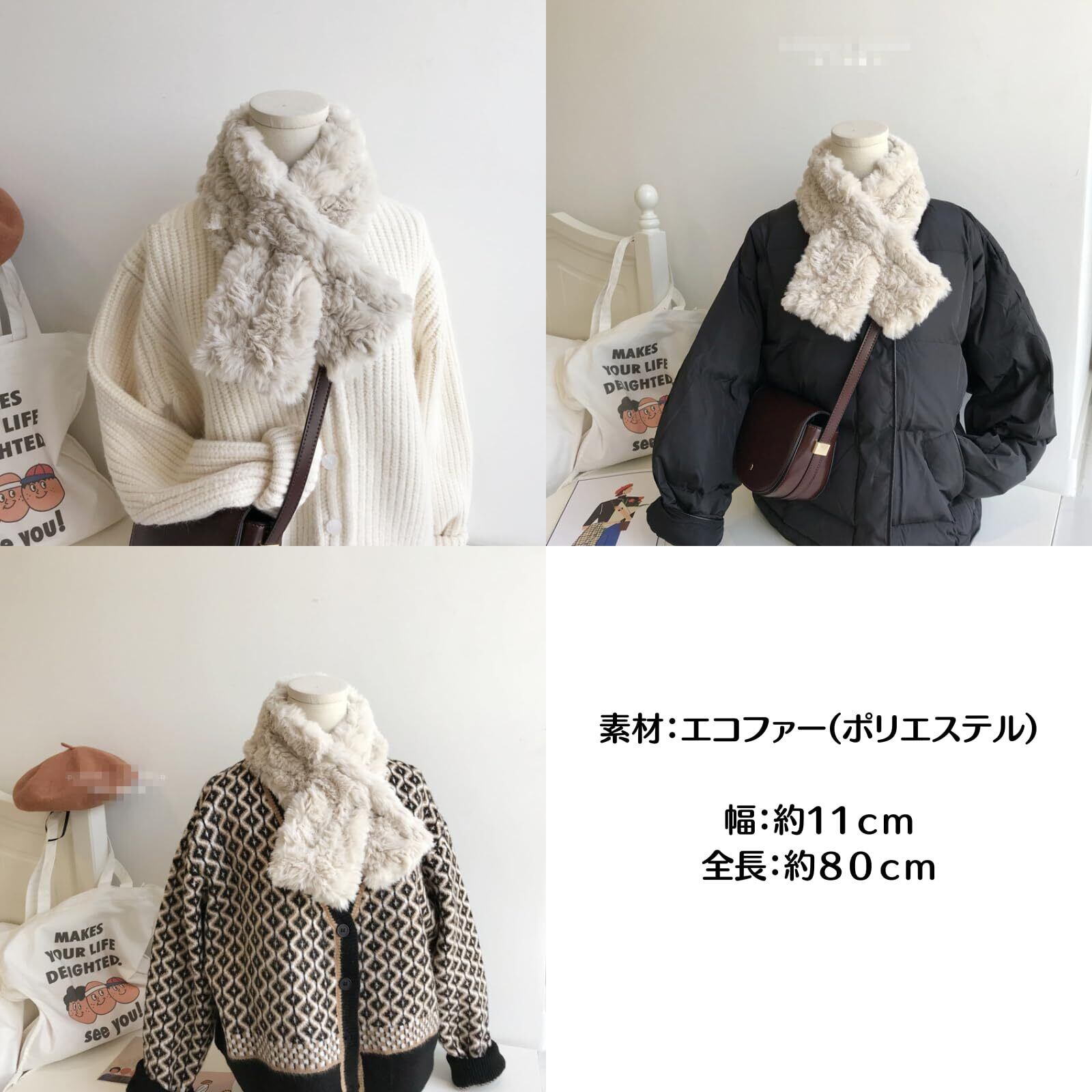 [ソユル] エコ フェイク ファー ティペット マフラー 襟巻き ふわふわ 暖か カジュアル シンプル 無地 フェミニン もこもこ 通勤 通学 レディース