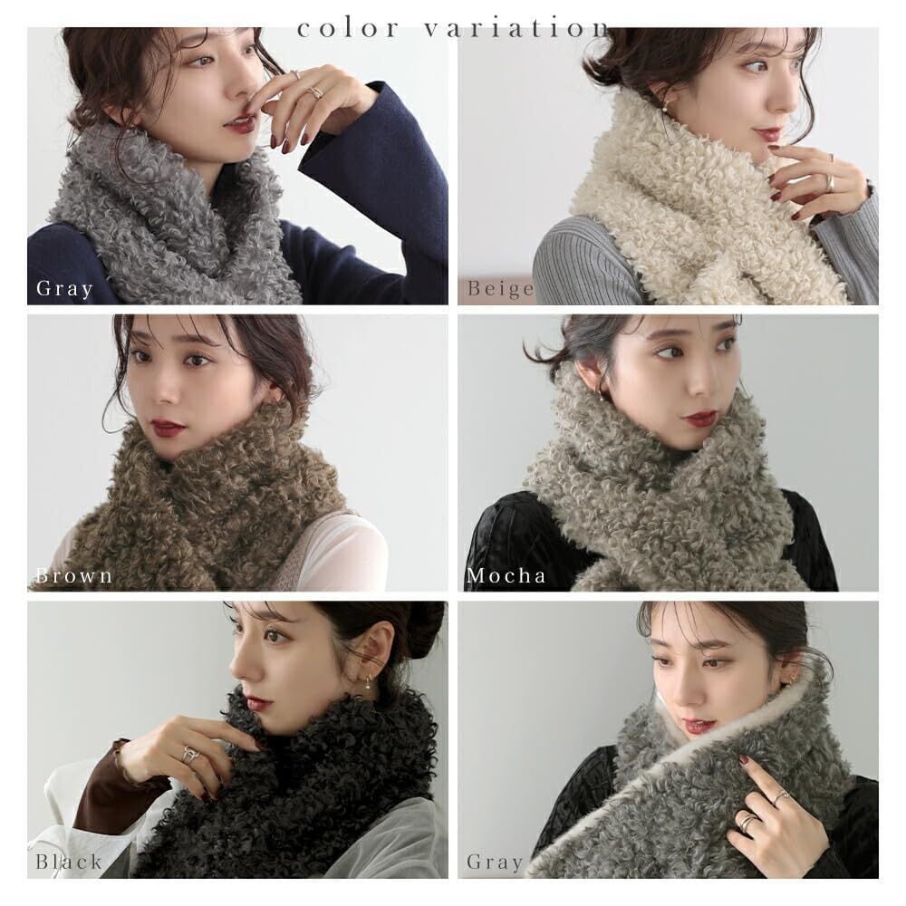 [Little&More] フェイクムートンボアスカーフ ティペット マフラー 大きい ストール シープボア レディース 防寒 ネックウォーマー 小顔 ショール