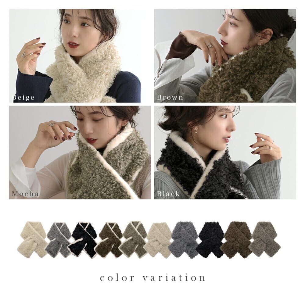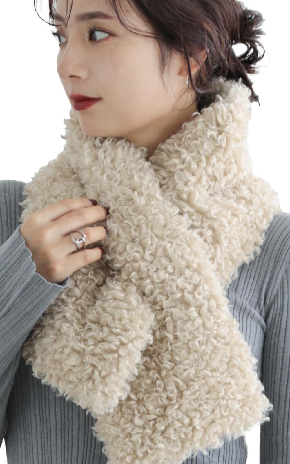 【新春セール】[Little&More] フェイクムートンボアスカーフ ティペット マフラー 大きい ストール シープボア レディース 防寒 ネックウォーマー 小顔 ショール