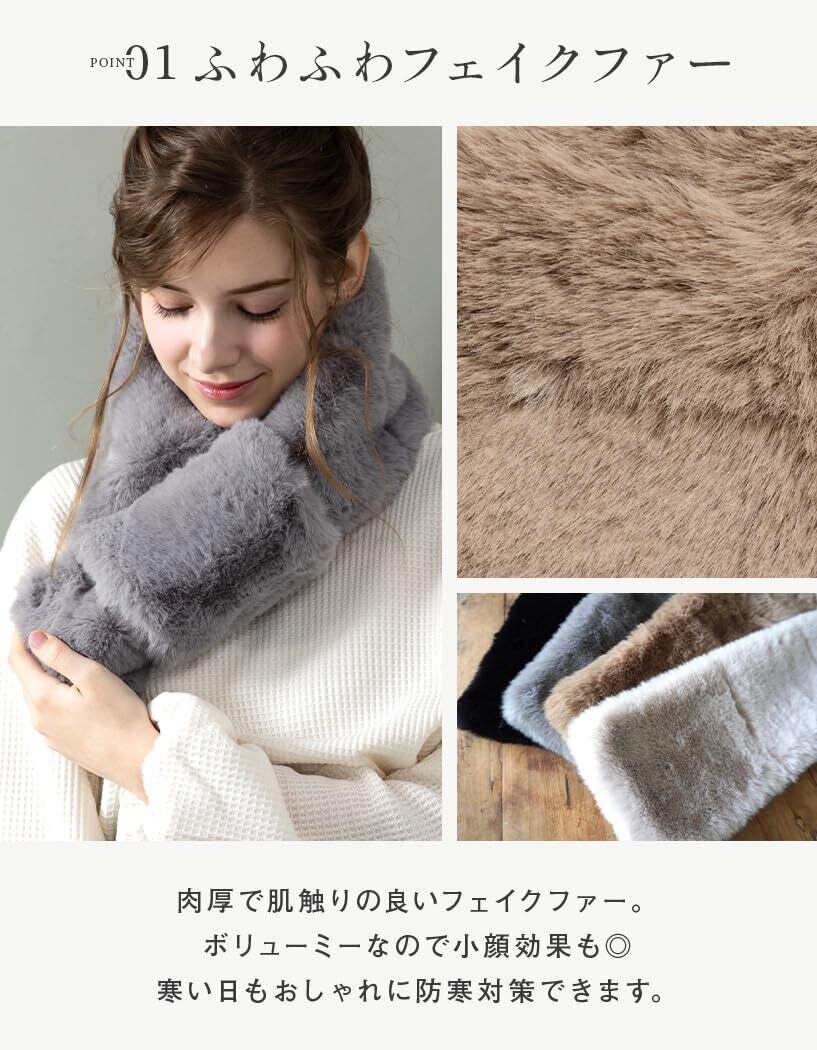 【防寒対策】ふわふわでボリューム感のあるフェイクファー生地で首元をしっかり温めてくれます◎