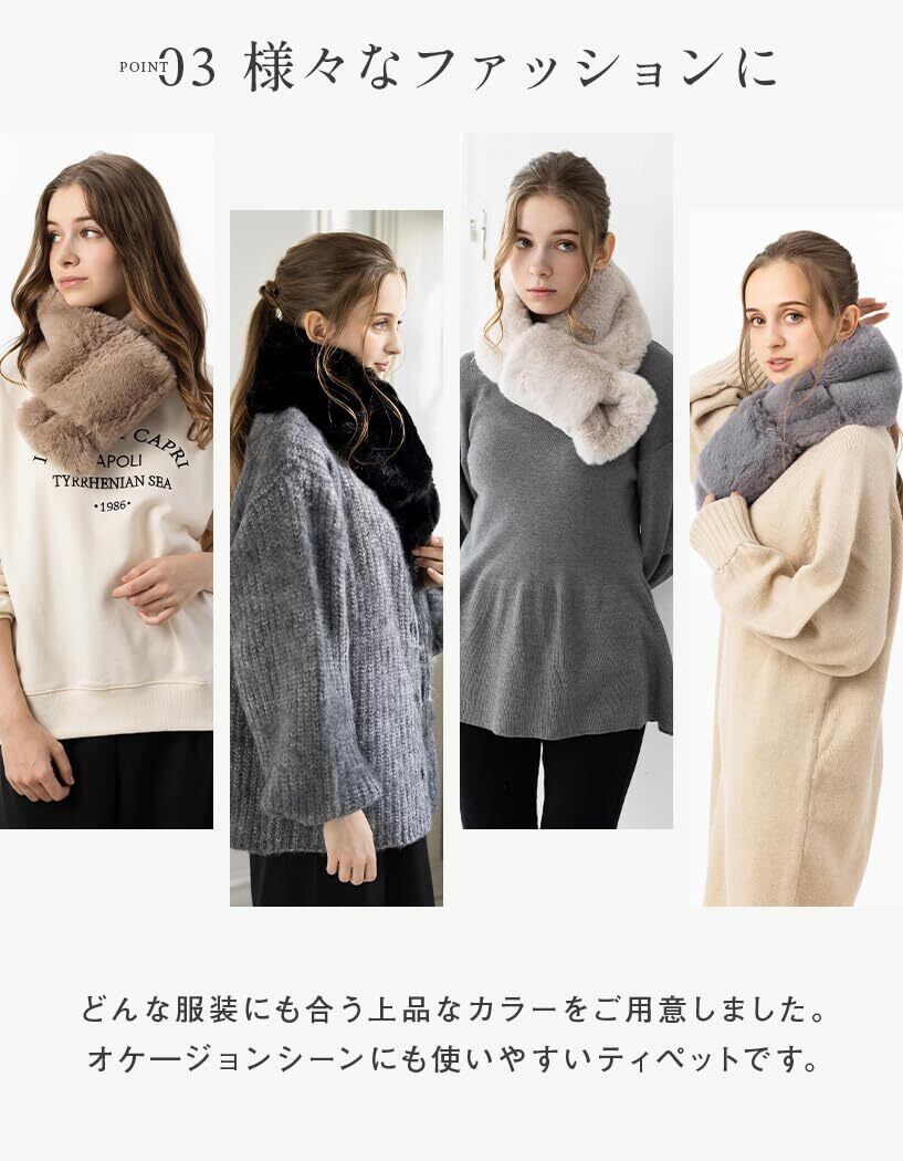 【人気商品】[Loo&c] [ルーアンドシー] フェイクファー ティペット レディース マフラー 厚手 秋冬 首巻き ふわふわ もこもこ 簡単装着 防寒 暖かい スヌード 付け襟