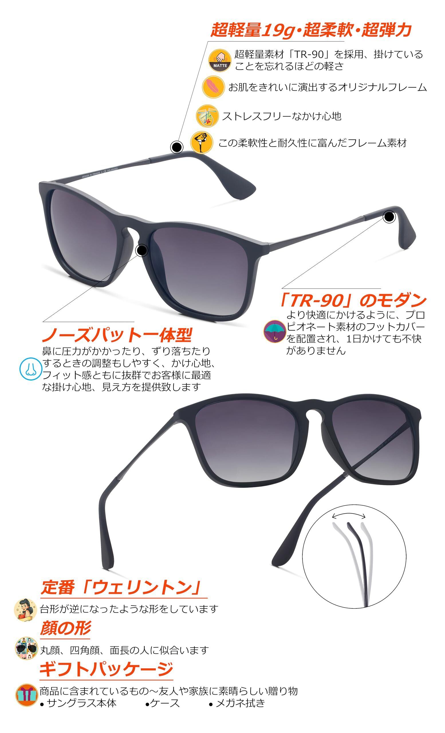 【UV400保護+偏光レンズ】UVA・UVB・UVC&目に有害なブルーライトを100%カットし、可視光線透過率10%-20%。光学ガラスより50倍のインパクトと耐傷性があります。偏光レンズ使用のため、眩しさやギラつきなどの反射光を99%以上カットします。コントラストを高め、目に優しく、より快適な視界を確保でき、目の負担を軽減し、クリアな視界を得ることができます。しかもポリカーボネート偏光レンズでより鮮やかな視界、軽くて薄い、抜群の耐衝撃性が実現できます。