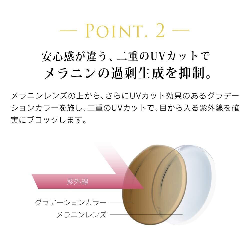 取得。紫外線から目と肌を守るメラニンレンズ:レンズに練りこまれたメラニン色素が紫外線を吸収。