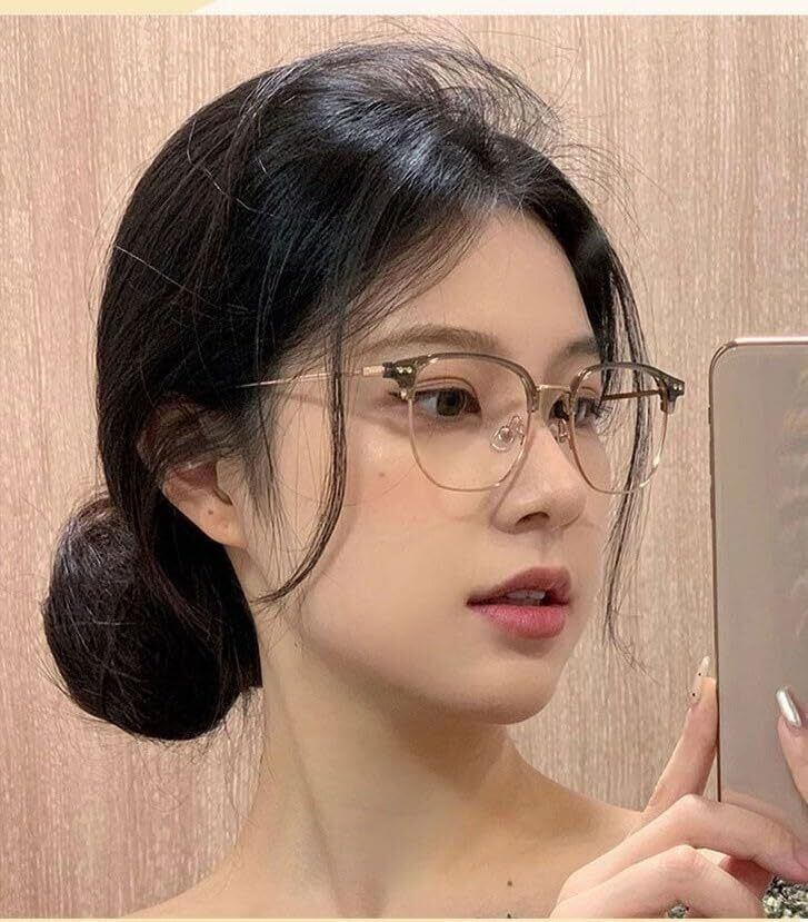 [FEISEDY] ブルーライトカット レディーズ おしゃれ 伊達メガネ 超軽量 スクエア メタル サーモント型 度なし 紫外線カット UVカット パソコン用 男女兼用 B1422