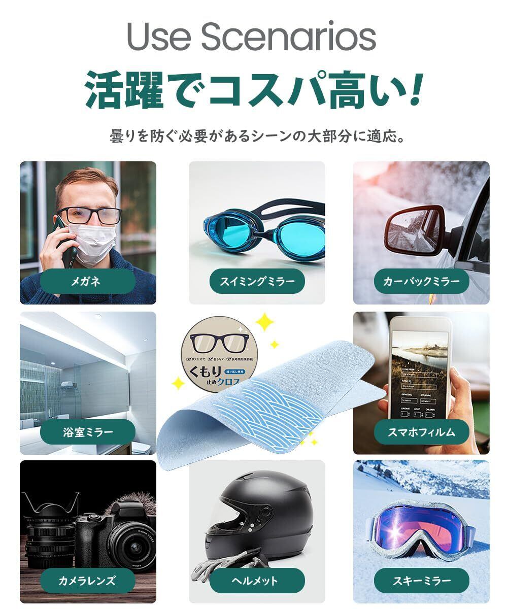 【簡単にくもり止め】メガネ拭きは水分と油分の吸収性の高いスエード調の機能素材(超微細繊維)を採用するので、雨の日や湿度が高い日でも、このメガネくもり止めを使えば、メガネを一拭きするだけで、明瞭な視界を取り戻すことができます。
