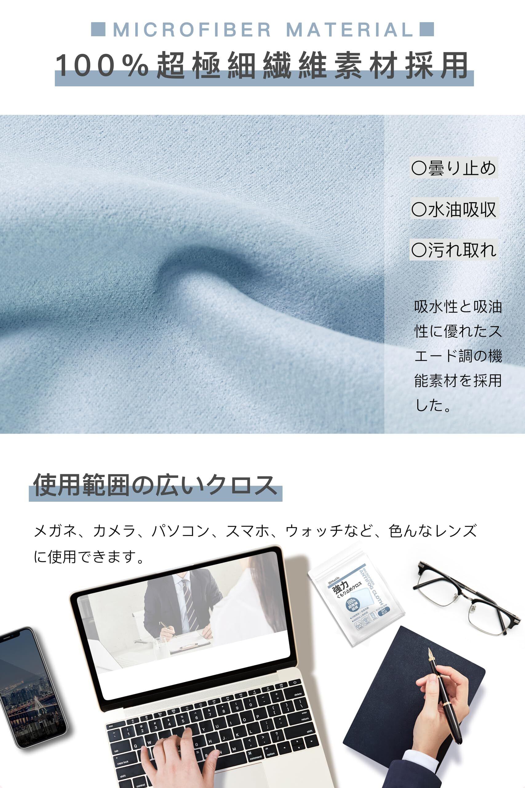 【超微細繊維・曇り止め効果UP】吸水性と吸油性に優れたスエード調の機能素材(超微細繊維)を採用し、超極細繊維マイクロファイバーのエッジ断面が、レンズの汚れやフレームに付着した皮脂をしっかりと落とし、水洗い後の水分も優しく拭き取ります